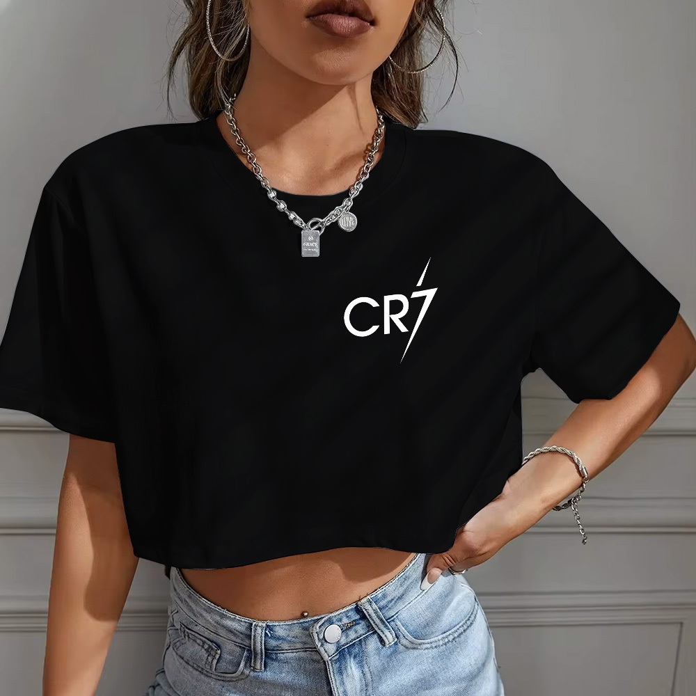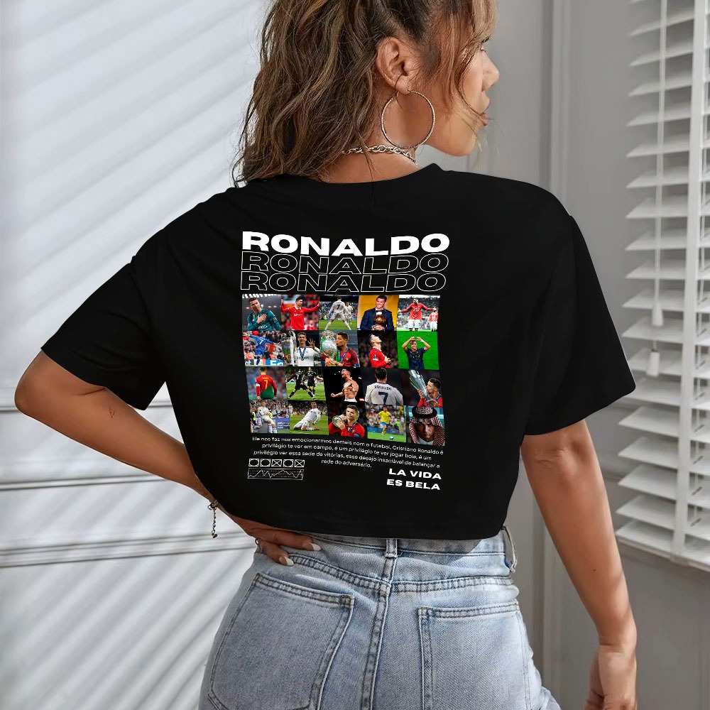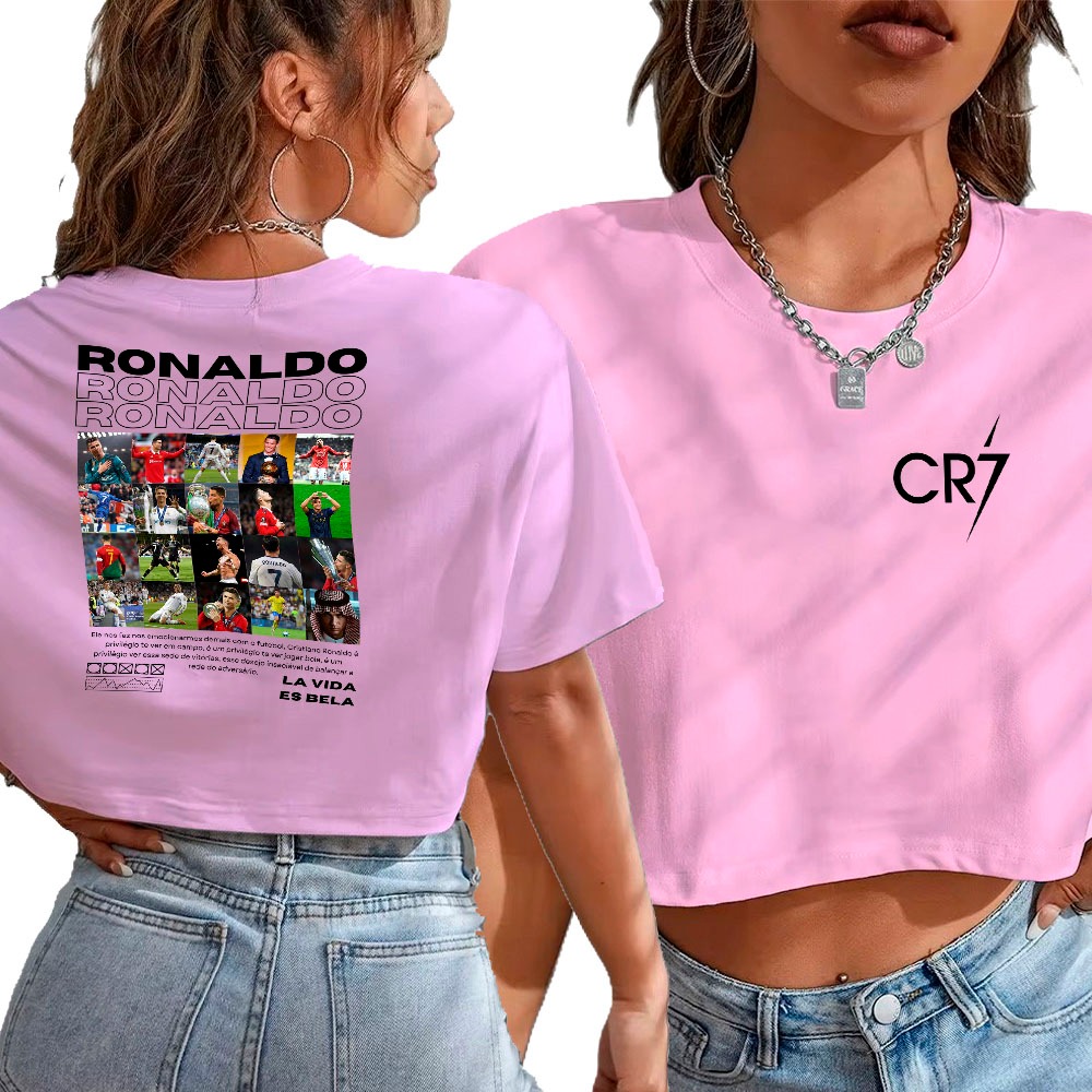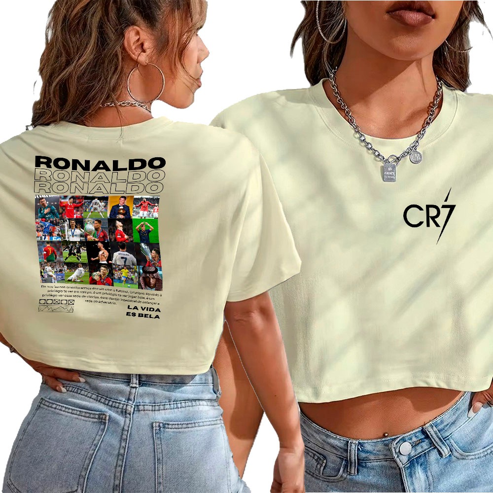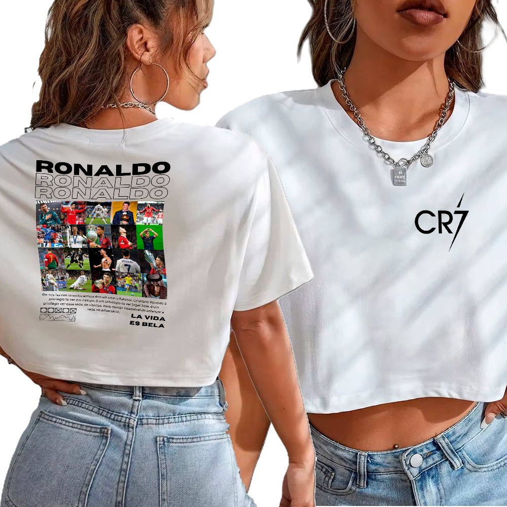 Blusa Cropped Top Estilosa Oversized Personalizada Cristiano Ronaldo Cr7 Goat Futebol