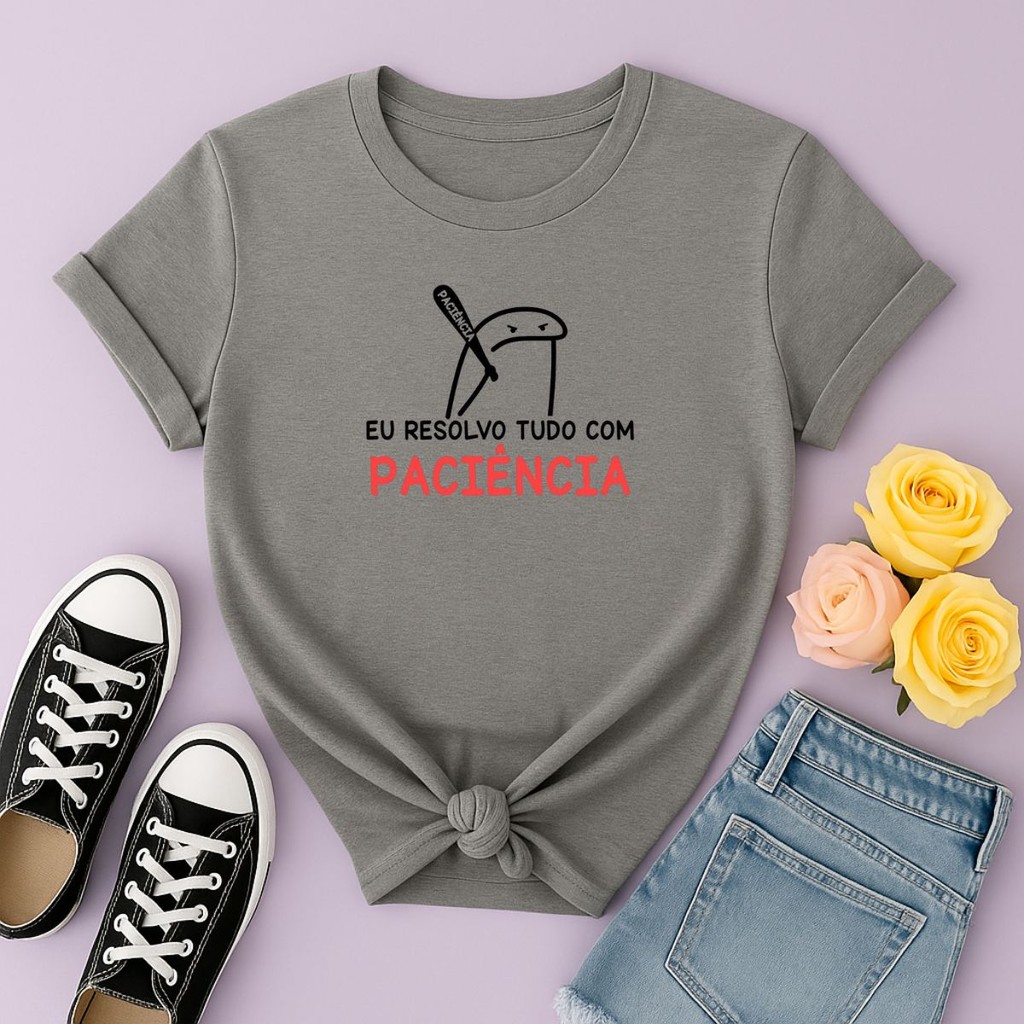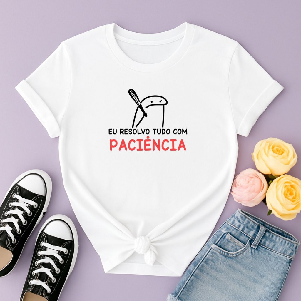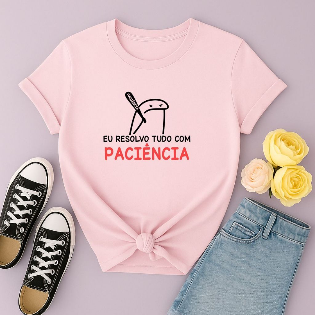 Camiseta Feminina Meme Eu Resolvo Tudo Com Paciencia Lançamento Qualidade Premium