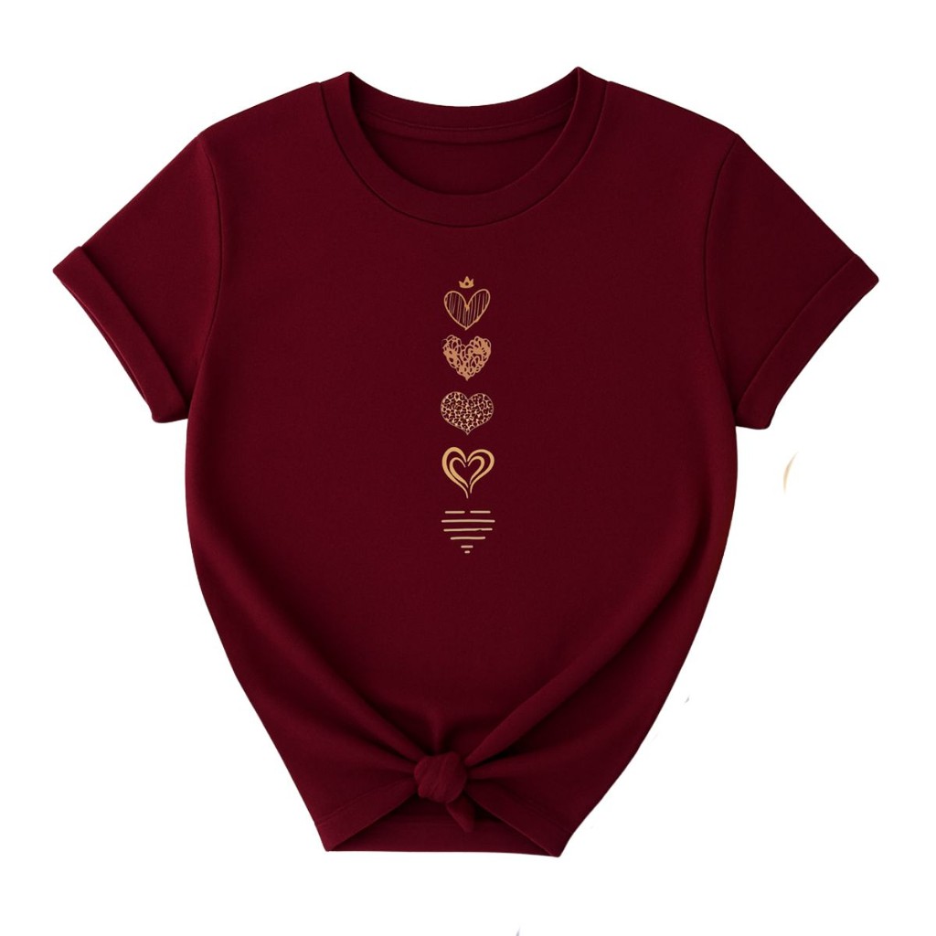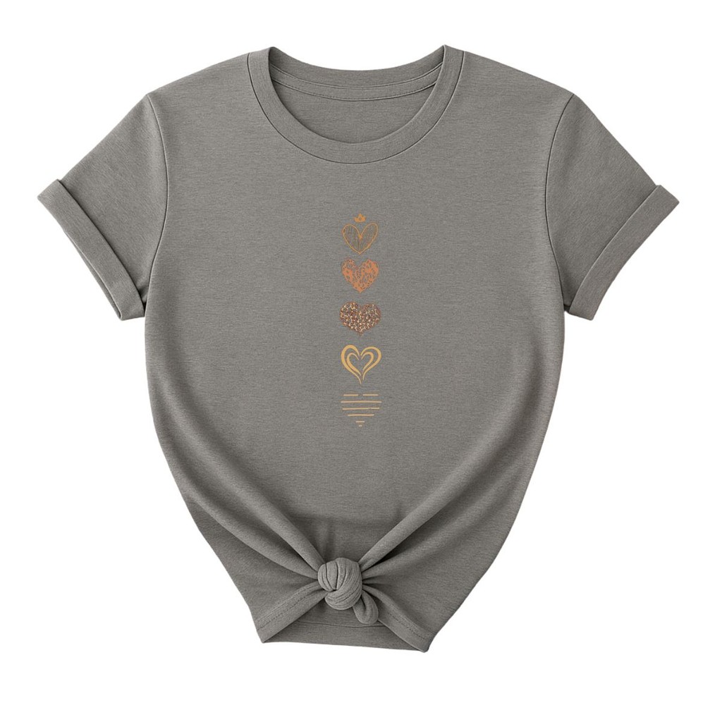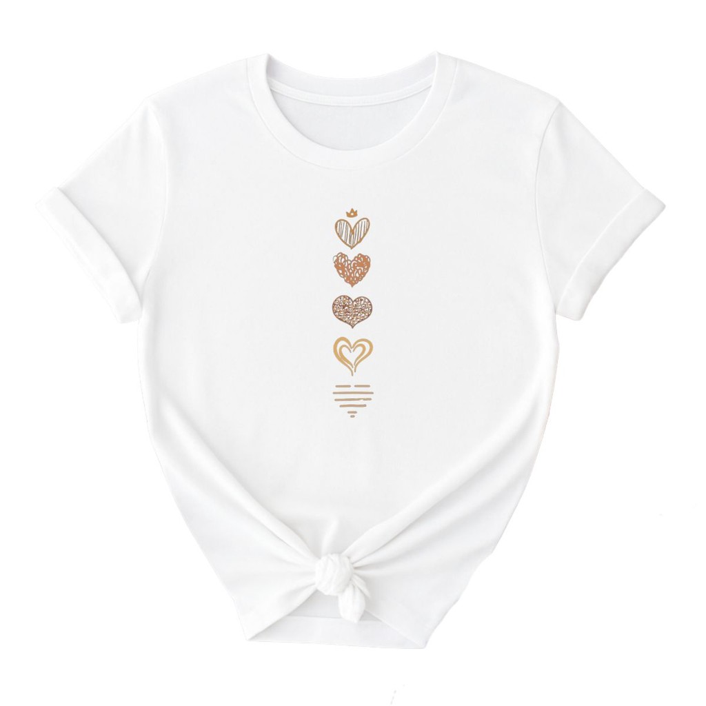 Camiseta Feminina Casual Corações Fofo Delicados Qualidade Premium