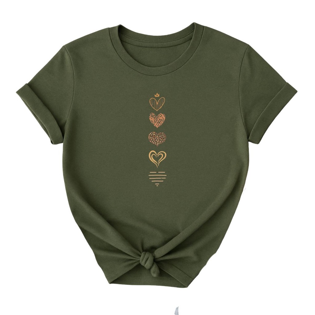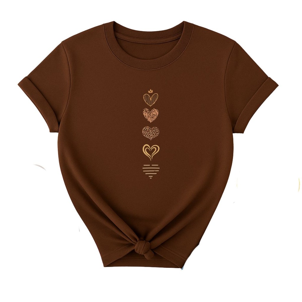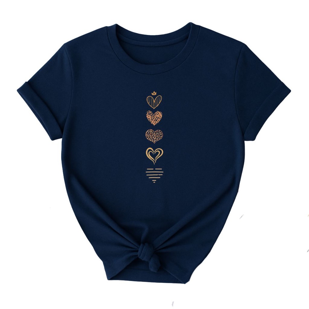 Camiseta Feminina Casual Corações Fofo Delicados Qualidade Premium