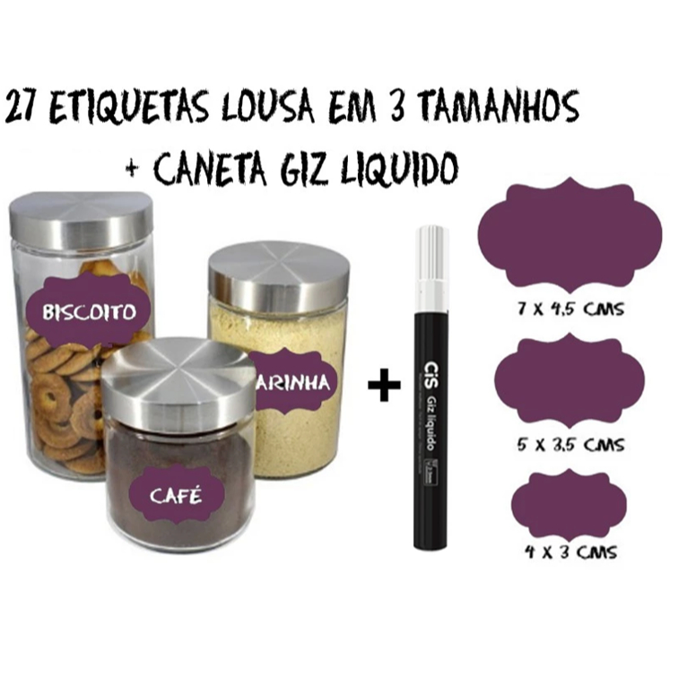Caneta Giz Branca + 27 Etiquetas Lousa VERSÁTIL em 3 tamanhos