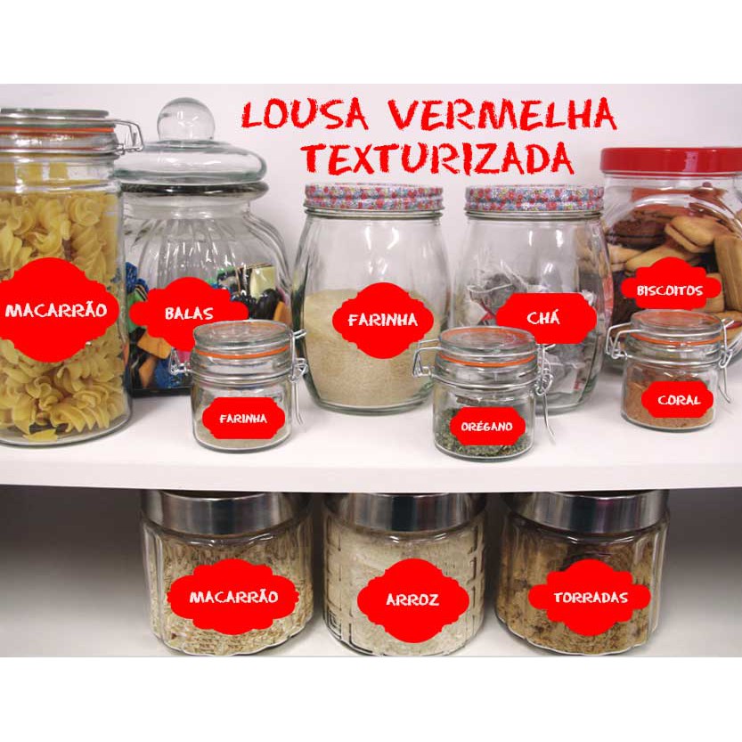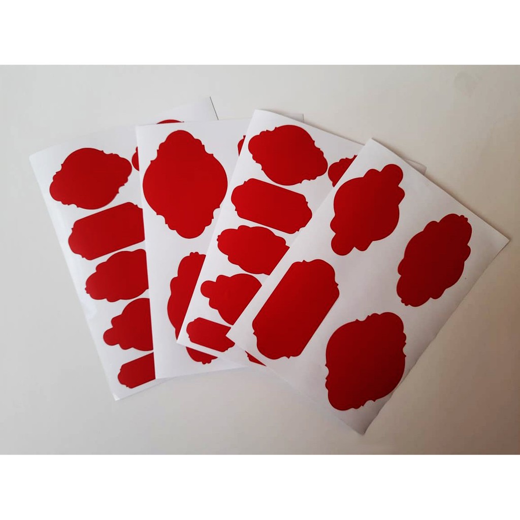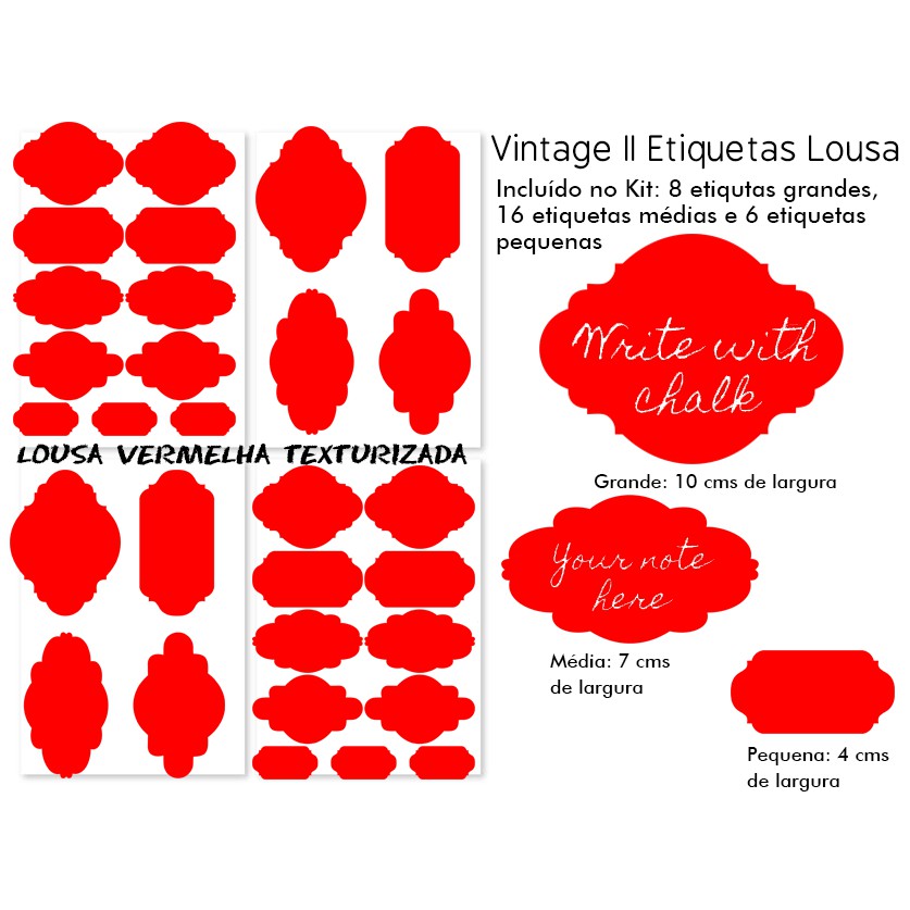 Kit 30 Etiquetas Adesivas Lousa Vintage II VERMELHA a Prova D'água para Potes de Cozinha
