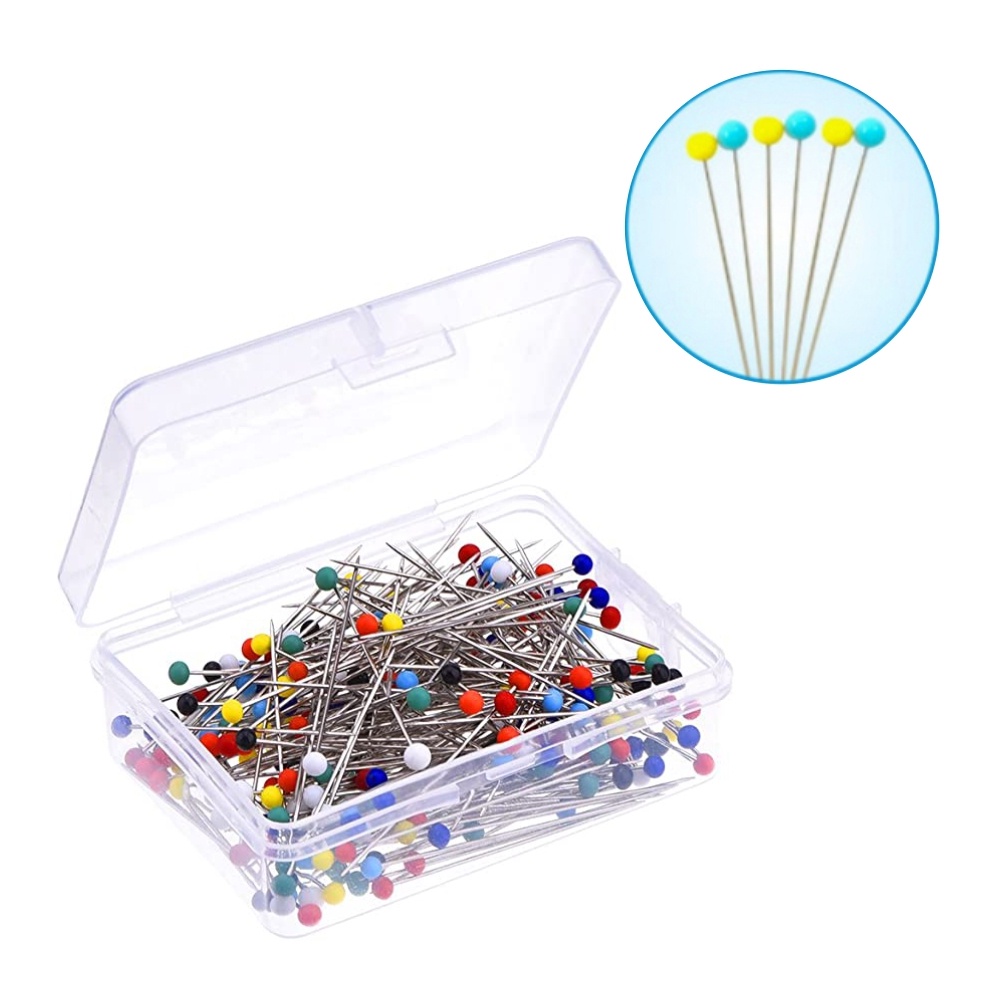 90 Alfinetes Cabeça Vidro Inox Fino Patchwork Alinhavar.