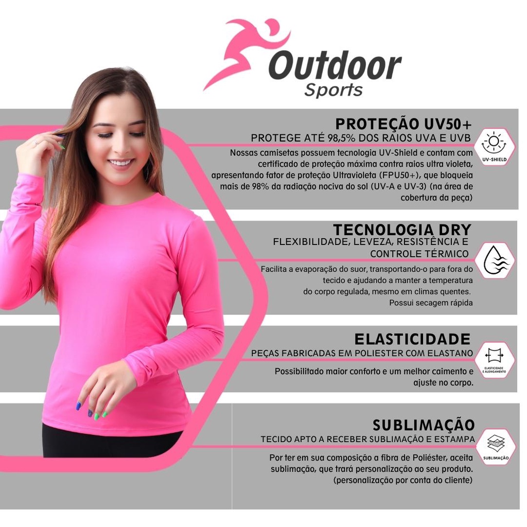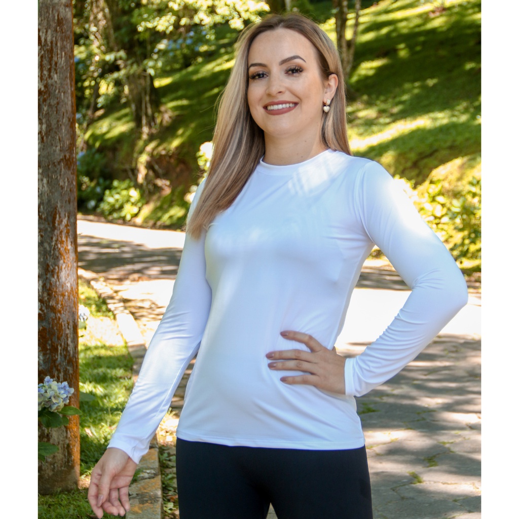 Camiseta Feminina UV50+ Proteção Solar Manga Longa Dry Fit Praia Elegante Fitness Academia