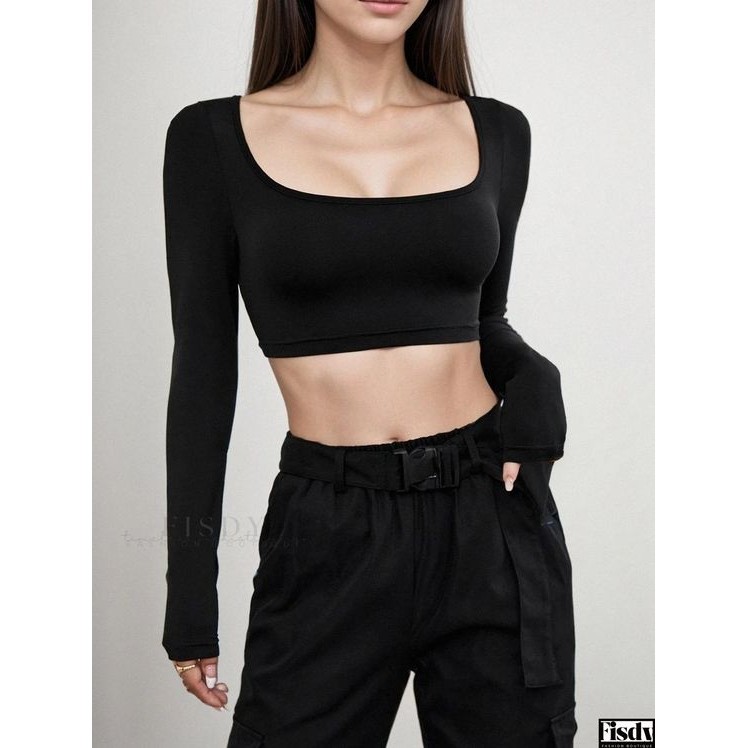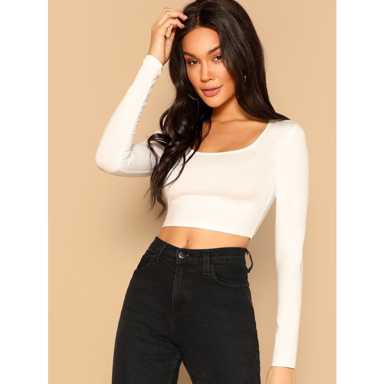 Cropped top decote quadrado mangas longas Vick moda gringa blogueira varias cores basic fitness festas festival