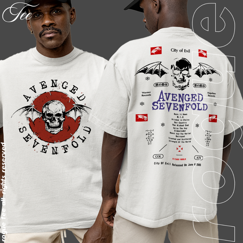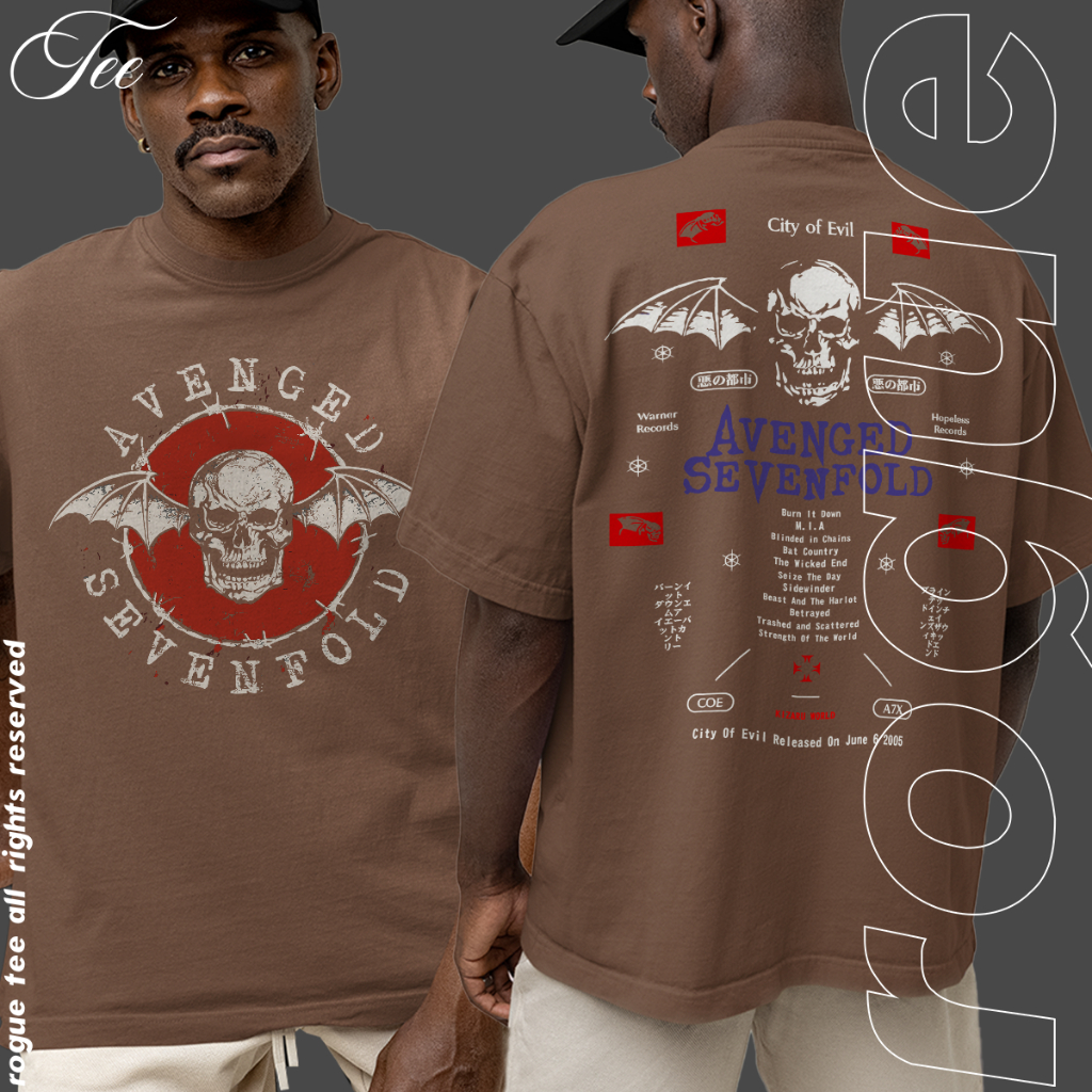 Camsieta Basica e OVERSIZED Avenged Sevenfold Logo City Of Devil Rock N Roll Unissex