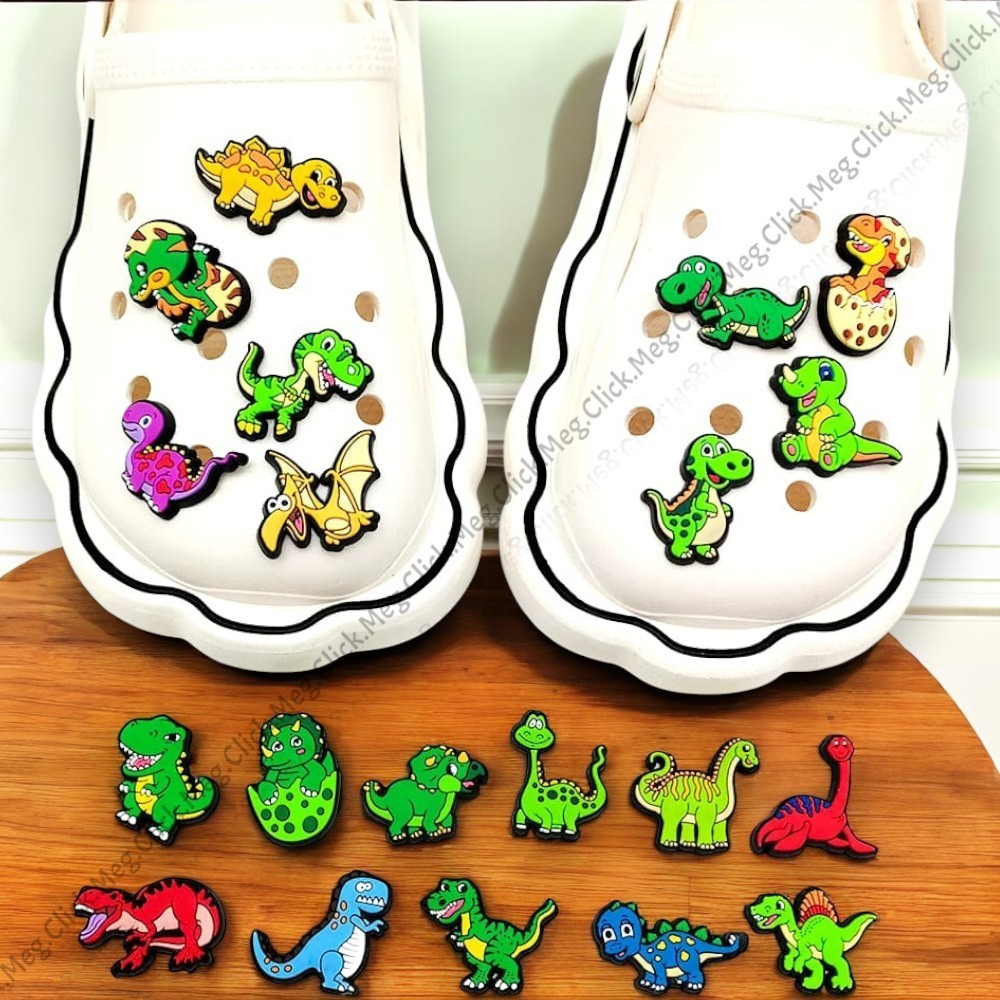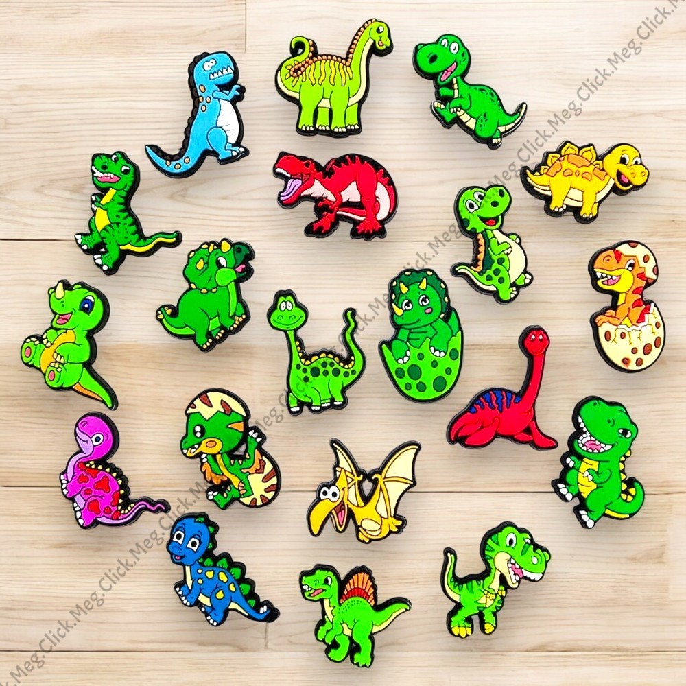 Kit 10 Pins Dinossauros | Bottons para Sandálias e Babuches – Acessórios PVC Divertidos 🦖