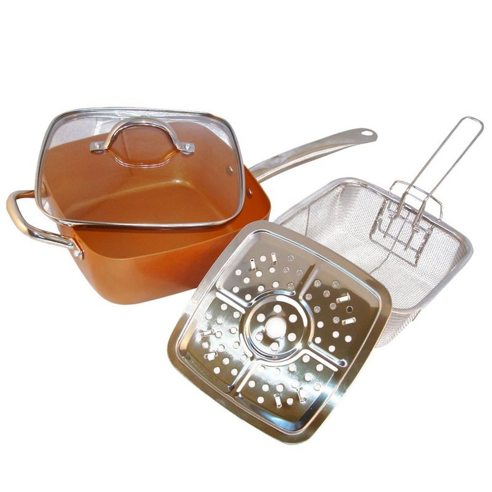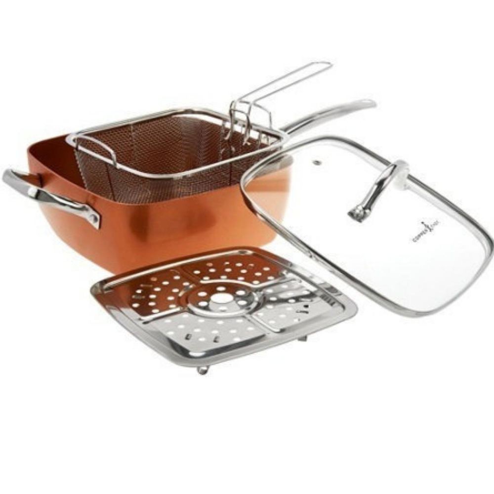 Panela Antiaderente + Tampa Vidro + Cesto Para Fritura + Vaporizador Inox