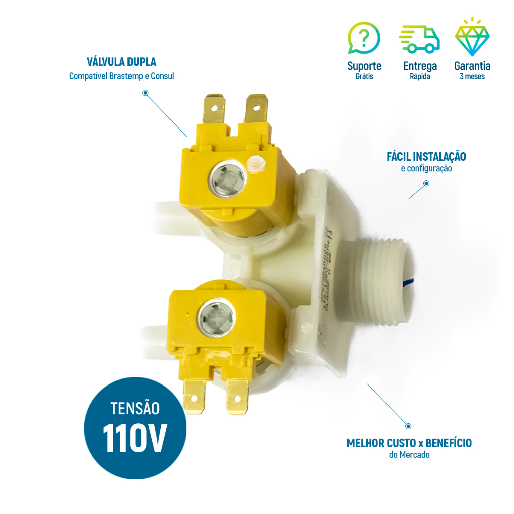 Válvula De Entrada De Água Dupla 127V Compatível Brastemp Consul