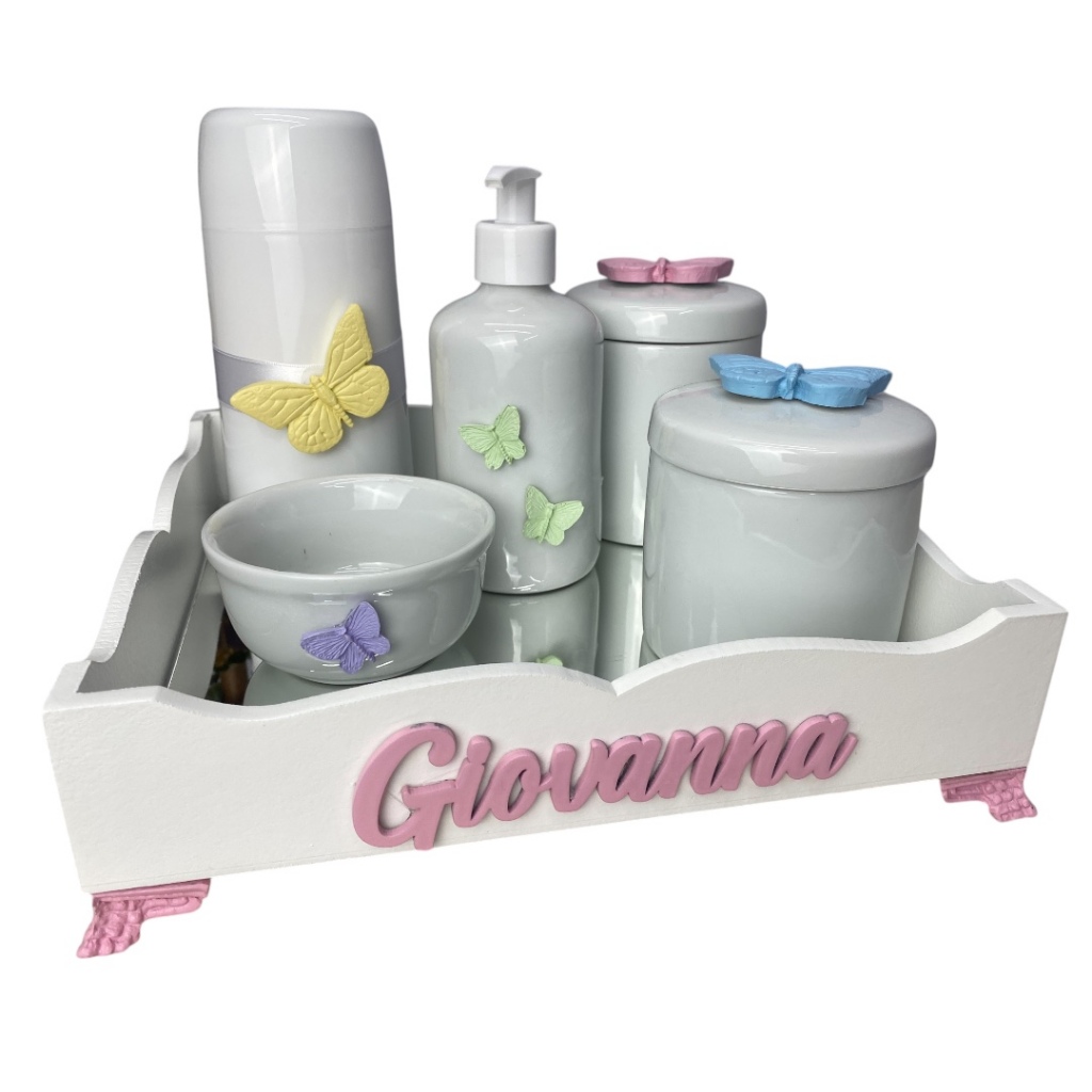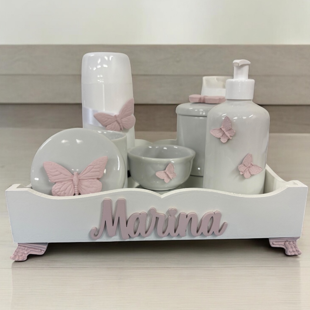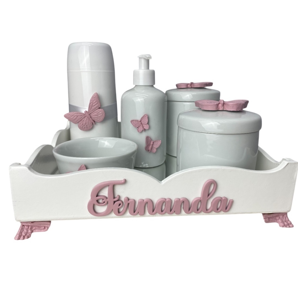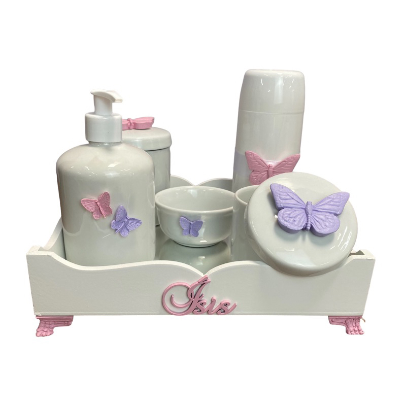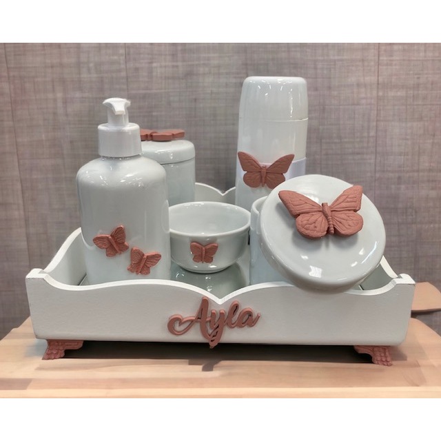 Kit higiene do Bebe porcelana Borboleta mod 2 com nome