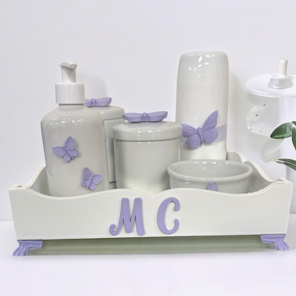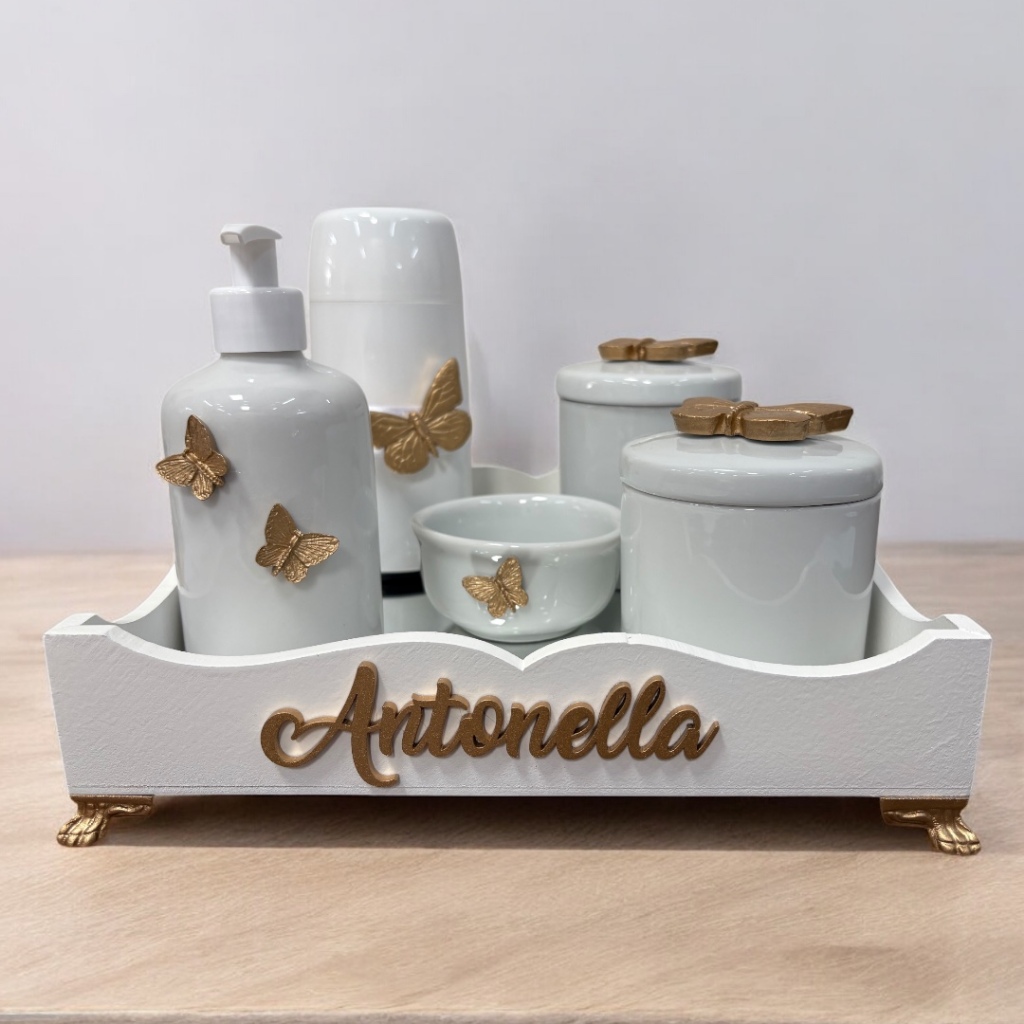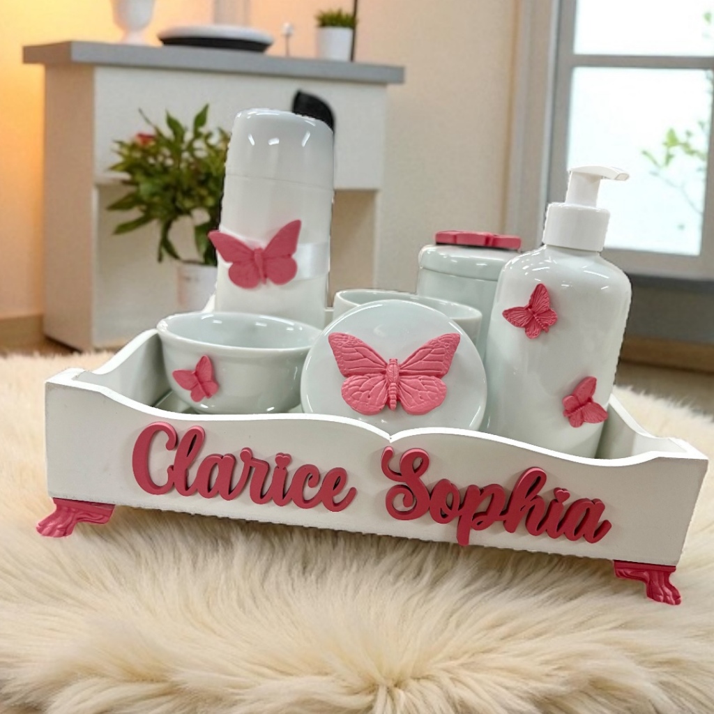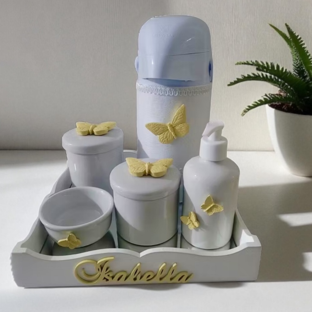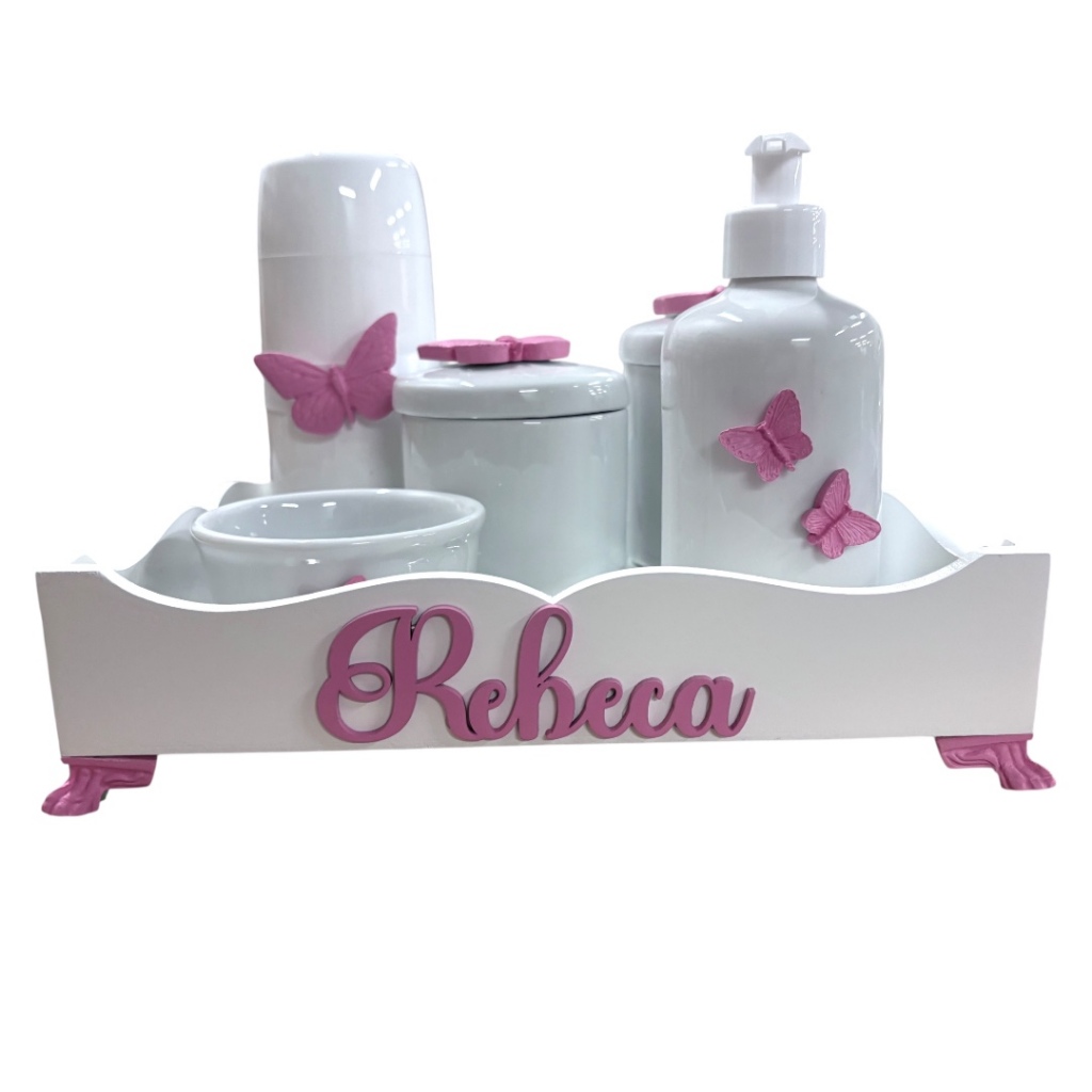 Kit higiene do Bebe porcelana Borboleta mod 2 com nome