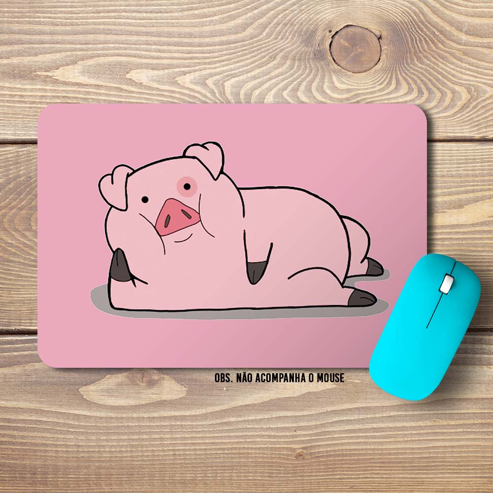 Mousepad Pig Deitado Rosa Barato Antiderrapante em Tecido