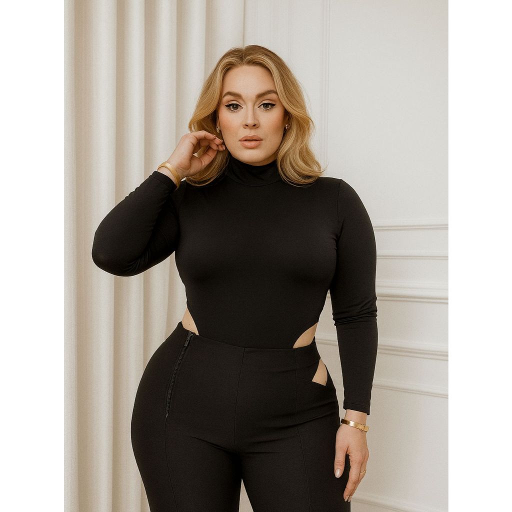 Body Collant Plus Size Manga Longa Gola Alta Cavado Cavadão Recorte Cintura Chic Blogueira Elegante Tendência Versátil
