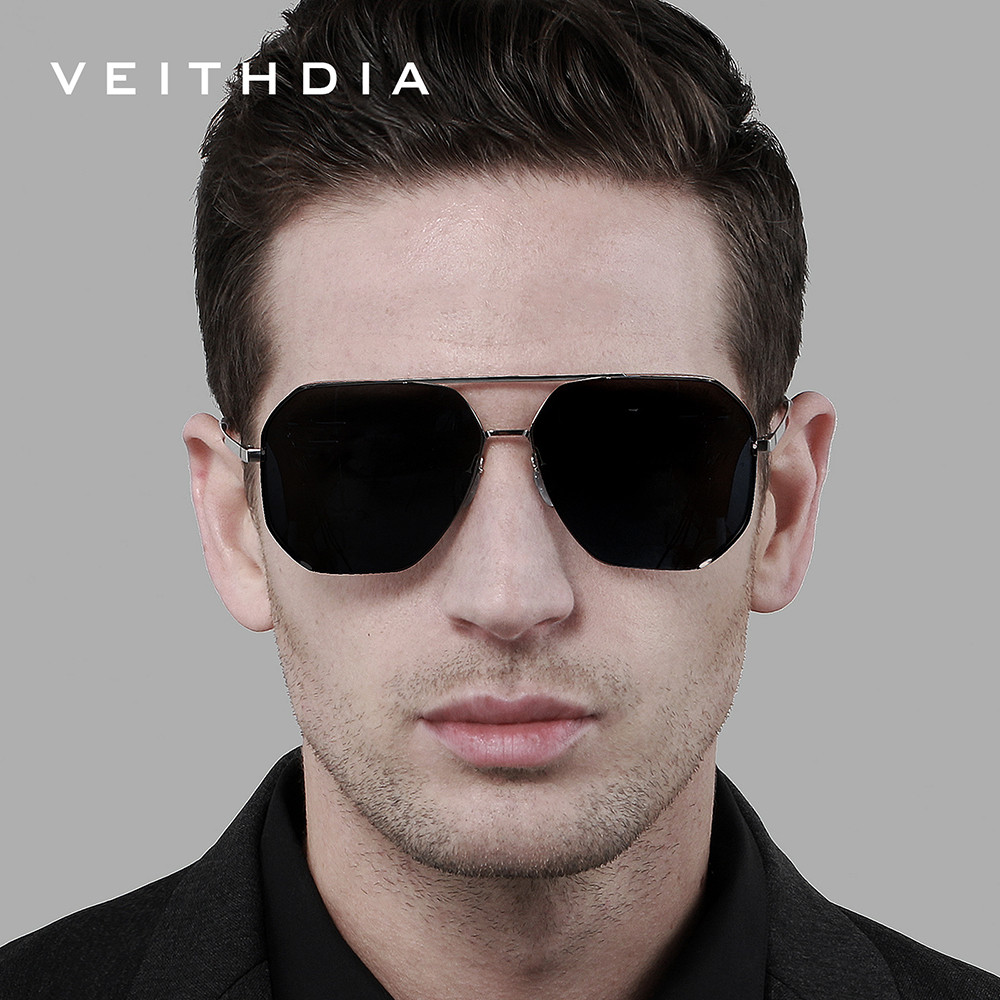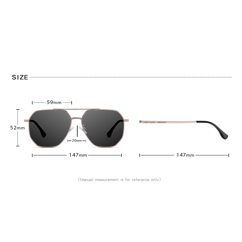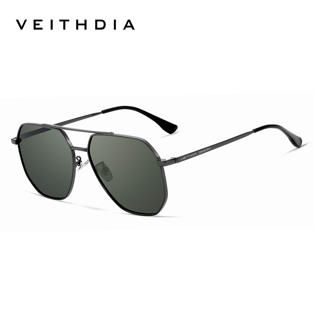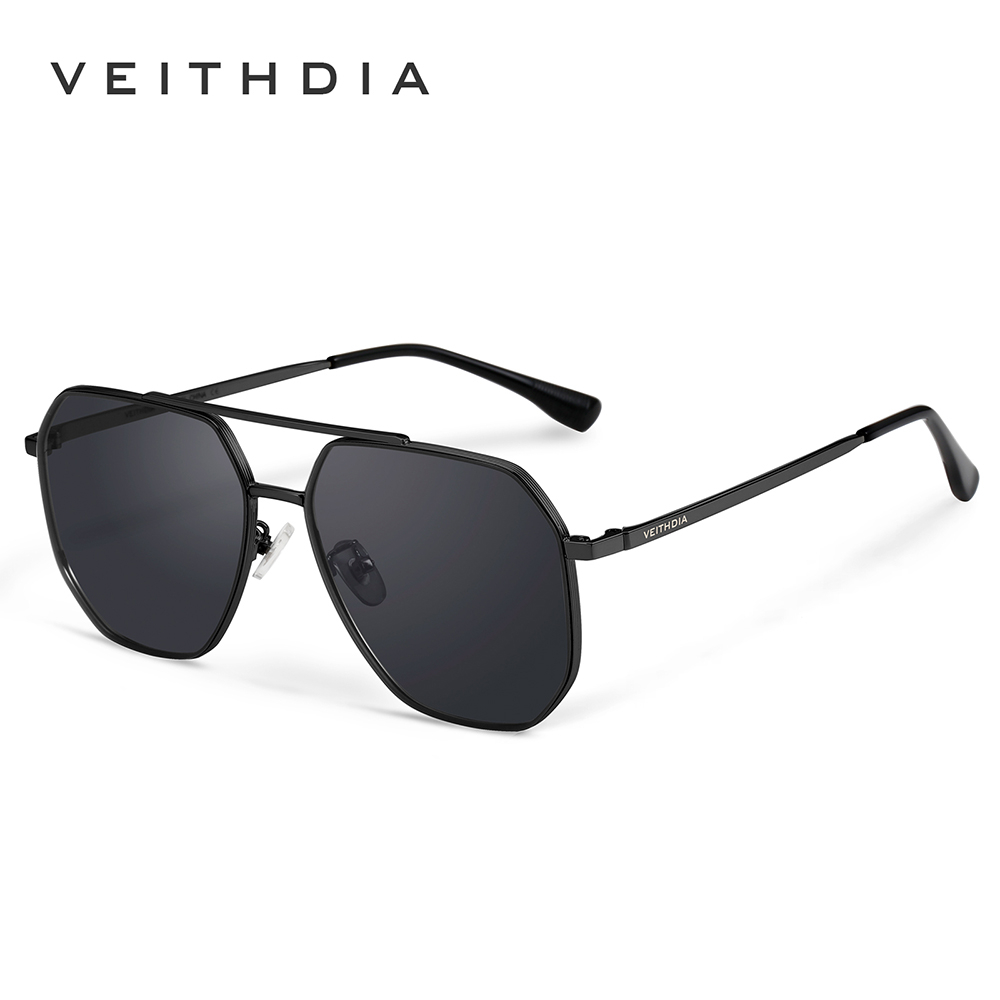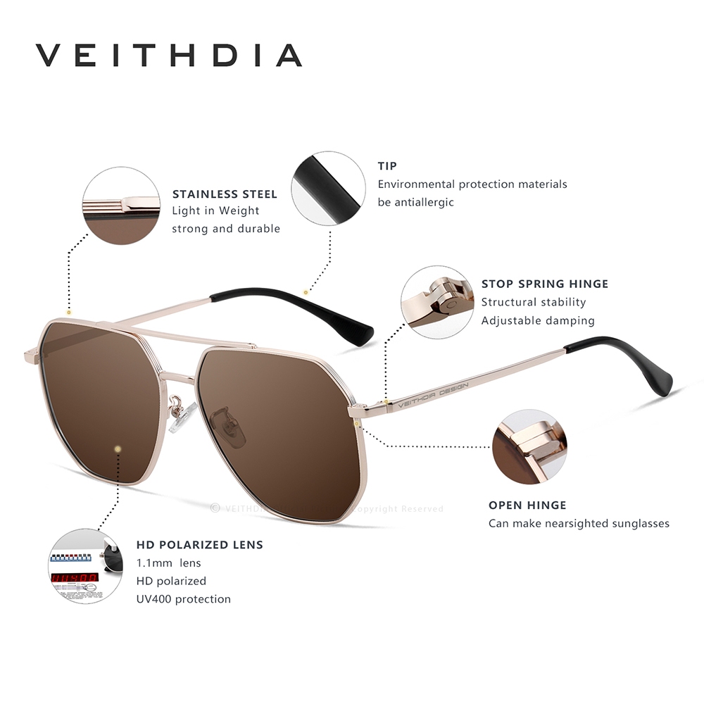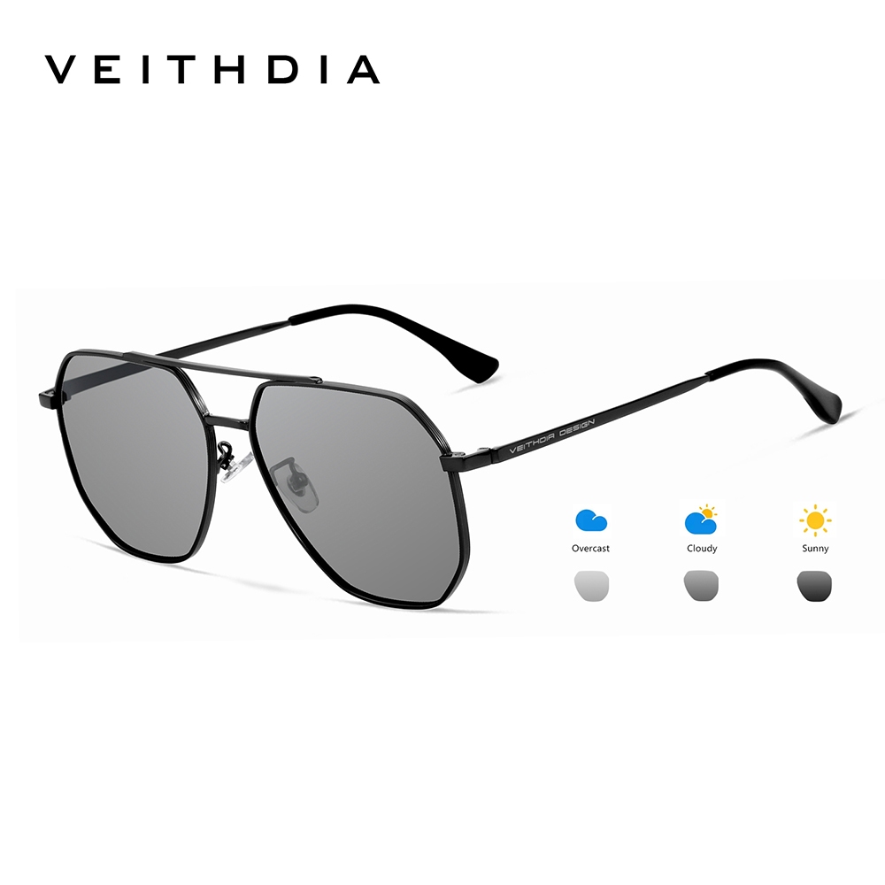 Óculos De Sol Masculinos VEITHDIA Armação De Aço Inoxidável HD TAC Lentes Fotocromáticas Polarizadas Clássico Proteção U