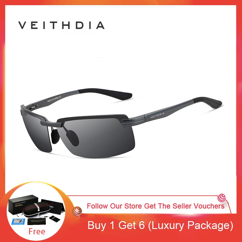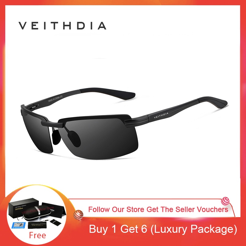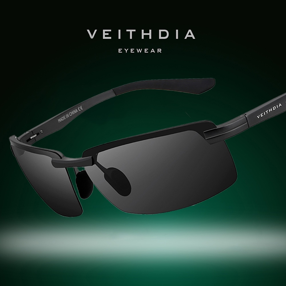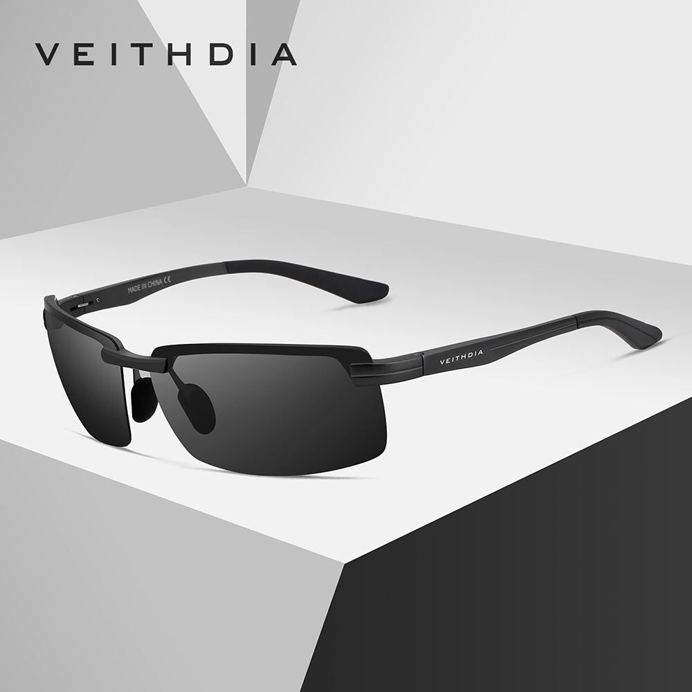 [Com Caixa] VEITHDIA 6510 Óculos De Sol Polarizados Masculinos Alumínio Magnésio Liga Meia Armação UV400 Lente Esportiva Dirigir Espelho Guarda-De Pesca