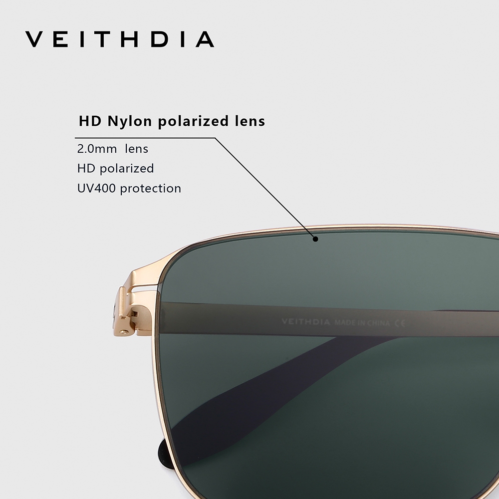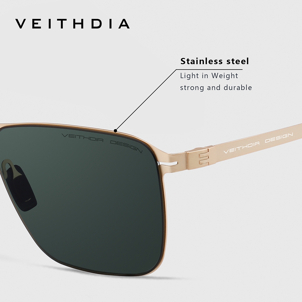 VEITHDIA Óculos De Sol Polarizados De nylon Polarizado De Alta Definição Em Aço Inoxidável Quadrado Para Homens V8210