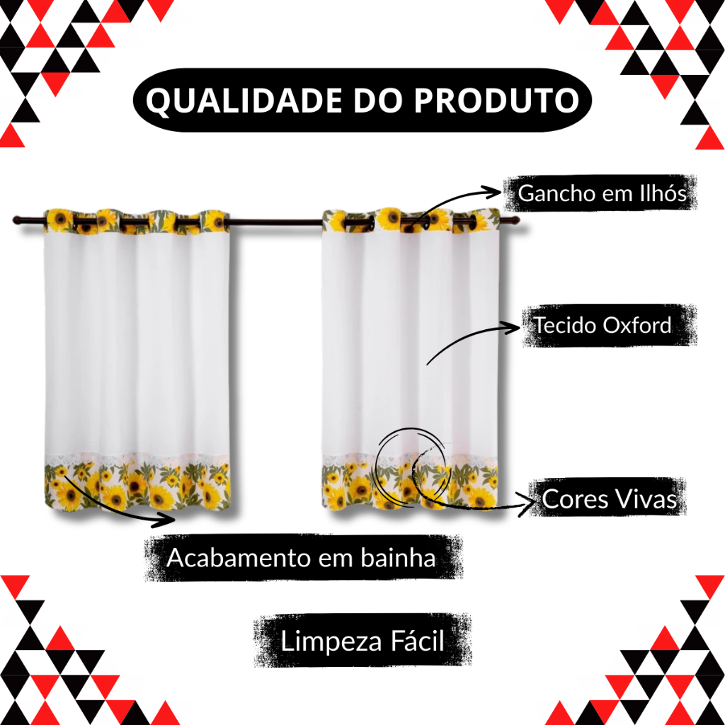 Cortina para Cozinha 2,80m x 1,20m Estampada – Ideal para Pia ou Janela | Secagem Rápida