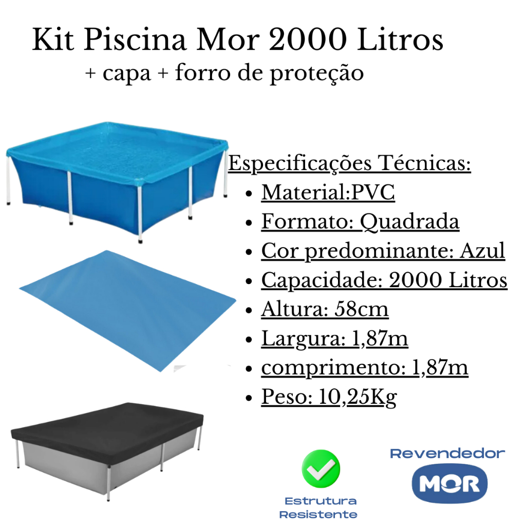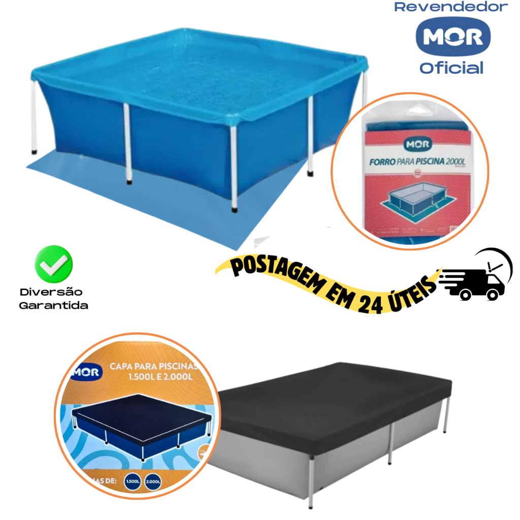 Piscina Infantil 2000 Litros Quadrada Mor + Capa + Forro