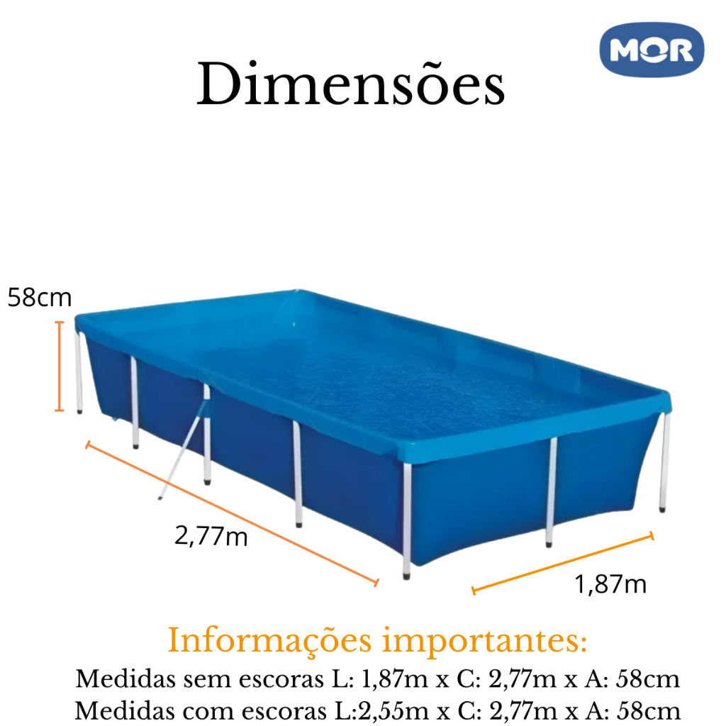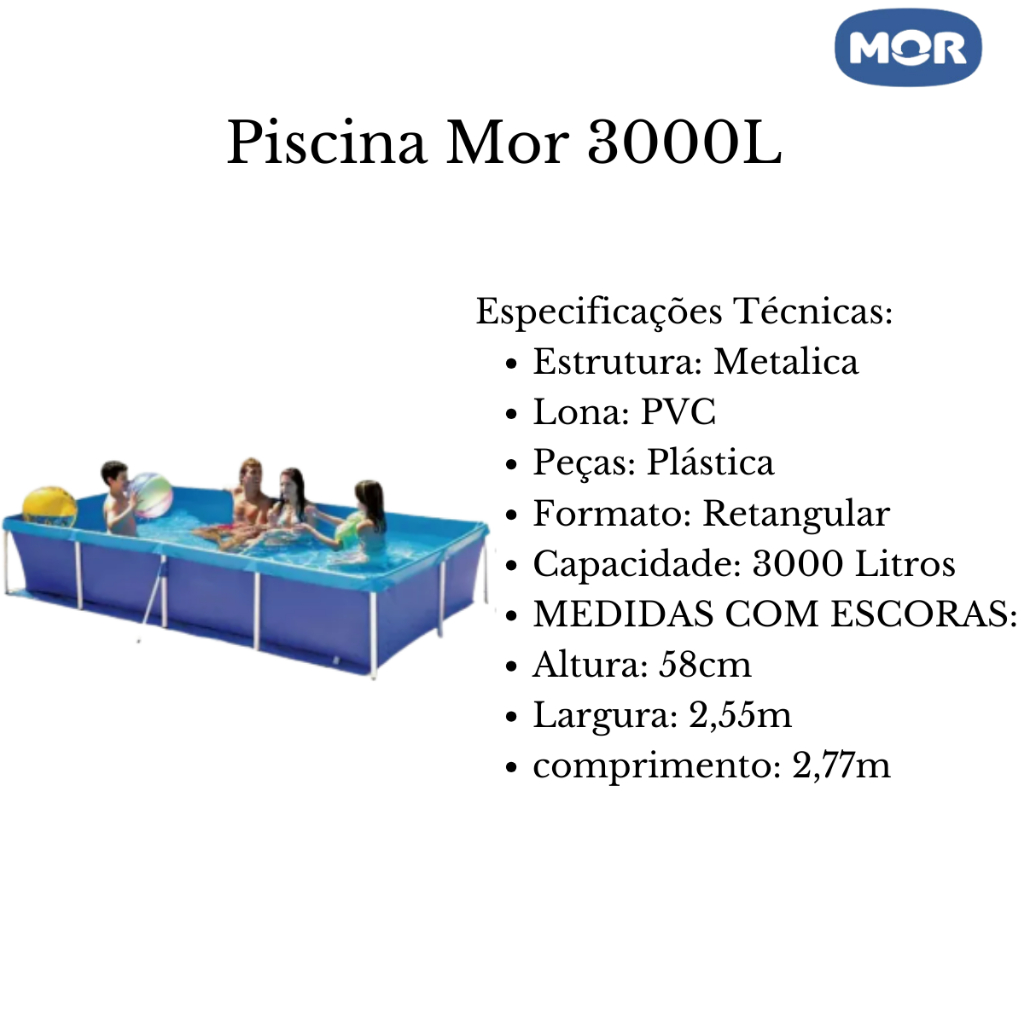 Kit Piscina Com Armação 3000 Litros Mor + Capa de Proteção