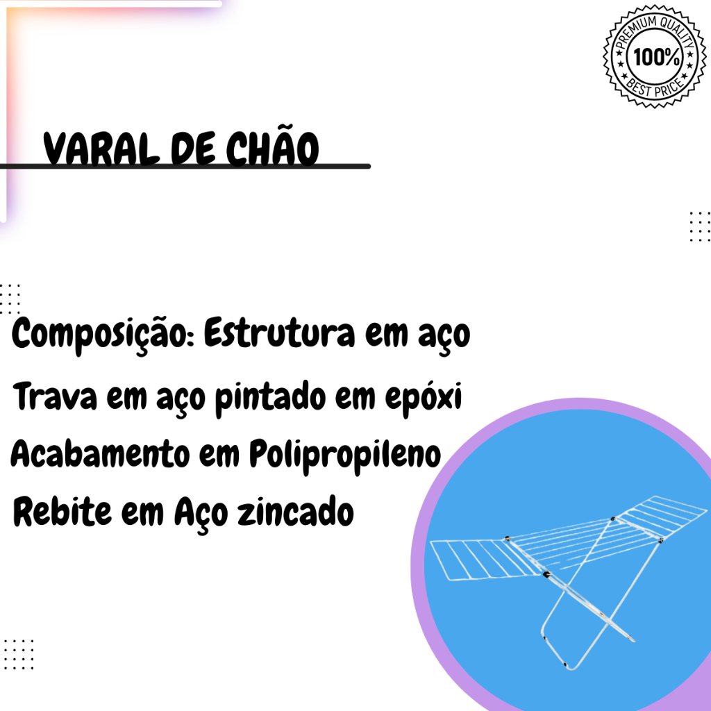 Varal De Chão Com Aba Retrátil Napoles Aço 11 Kg