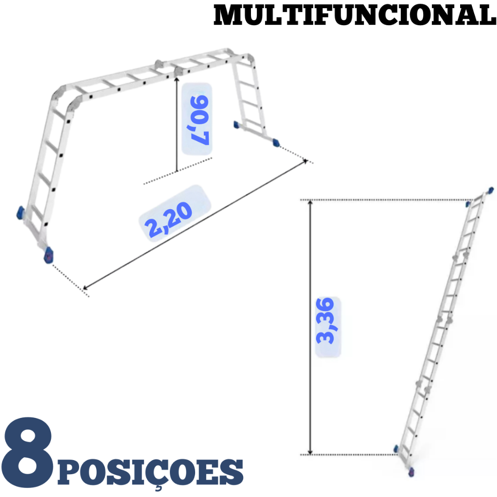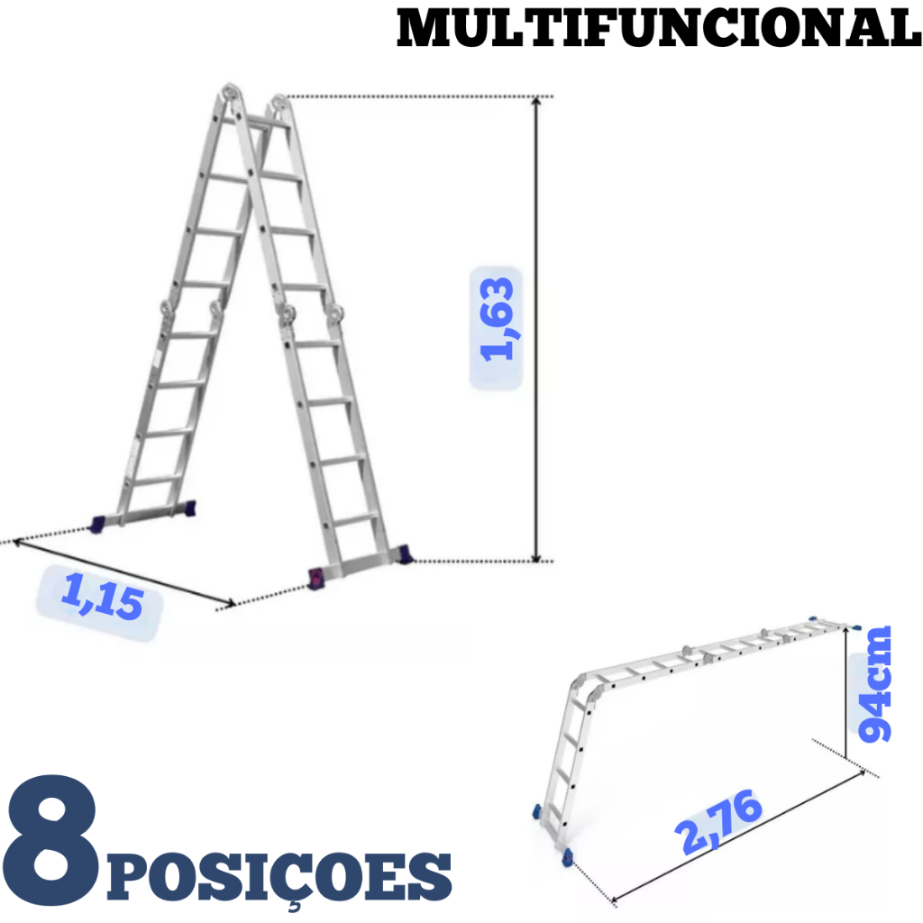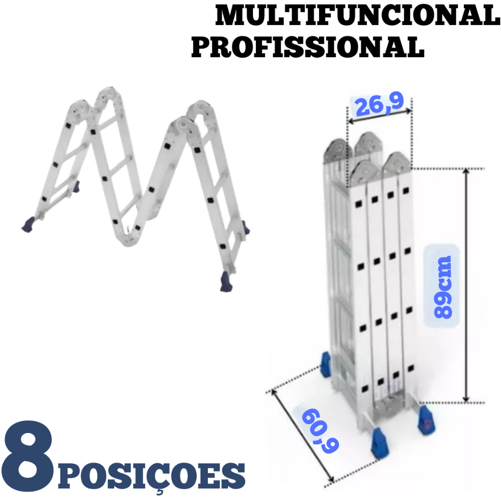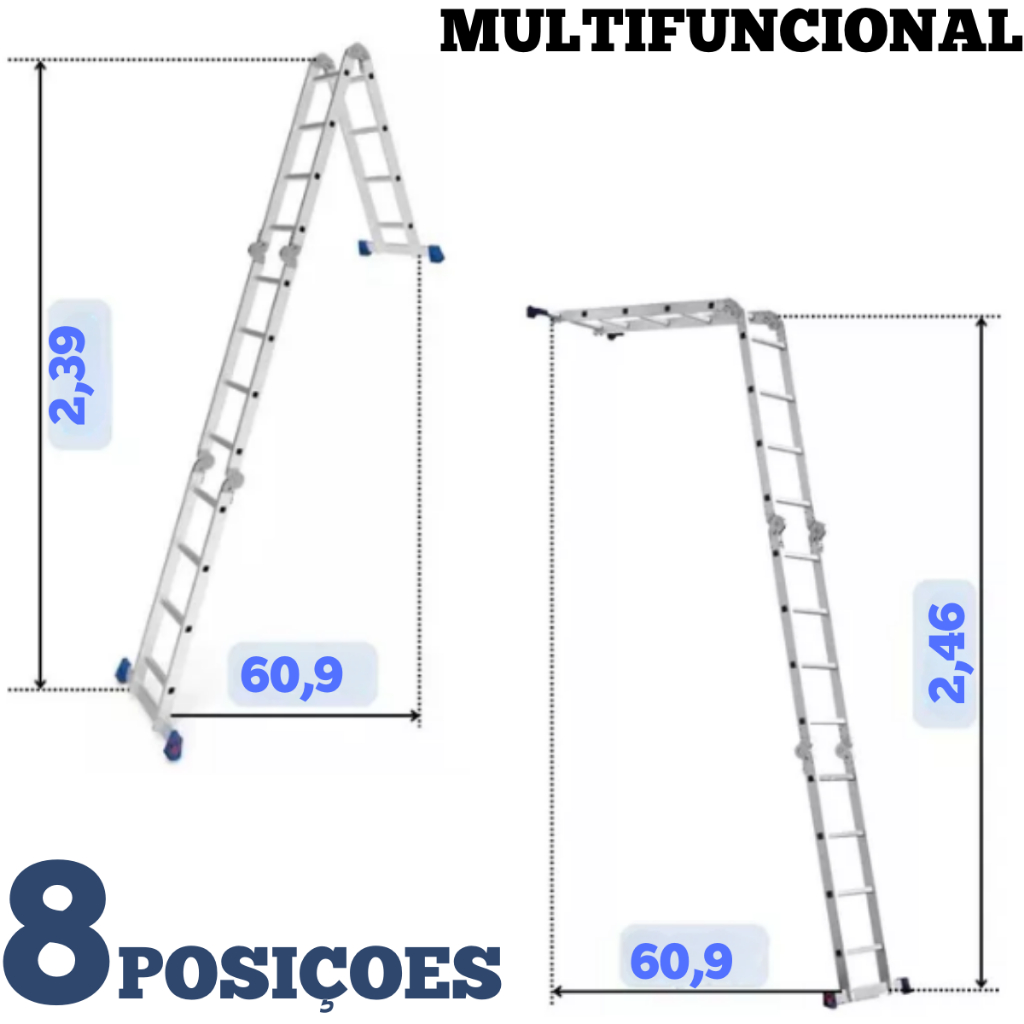 Escada Articulada Multifuncional 4x3 12 Degraus Alumínio Mor
