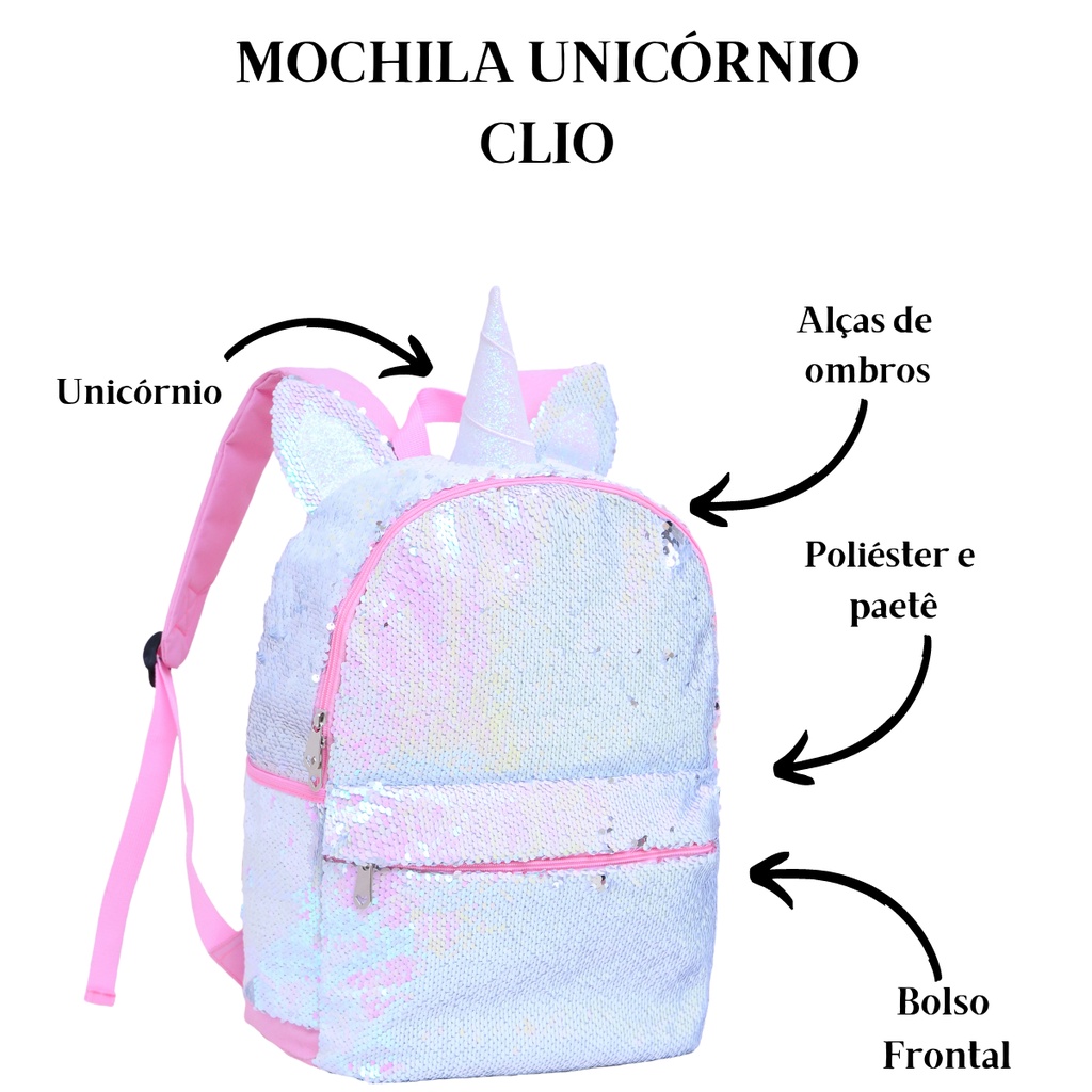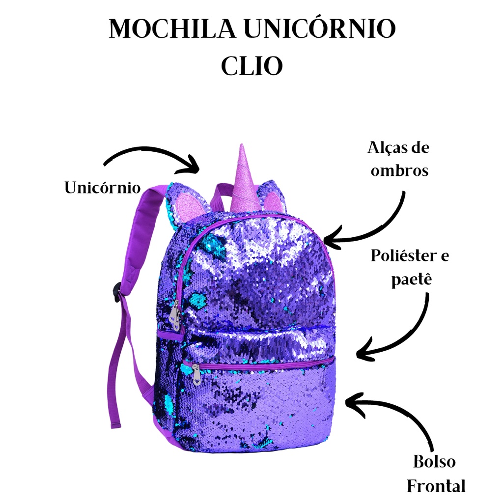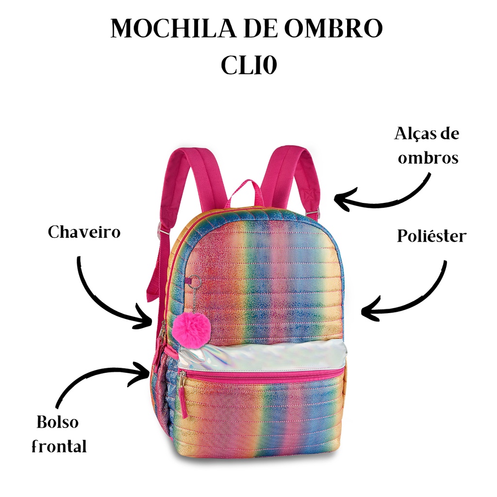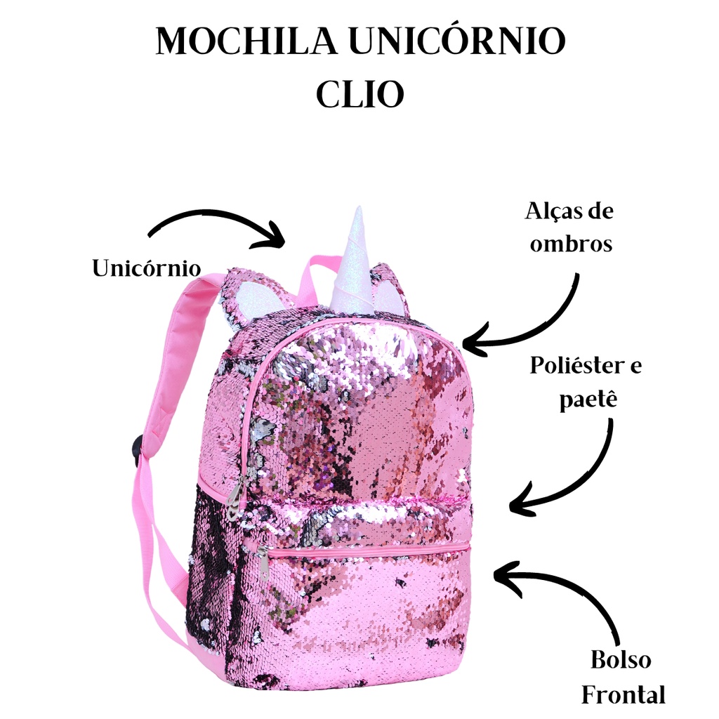 Mochila Escolar Pompom Paetê Juvenil Lantejoula Clio Nova