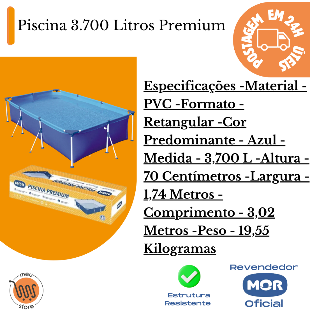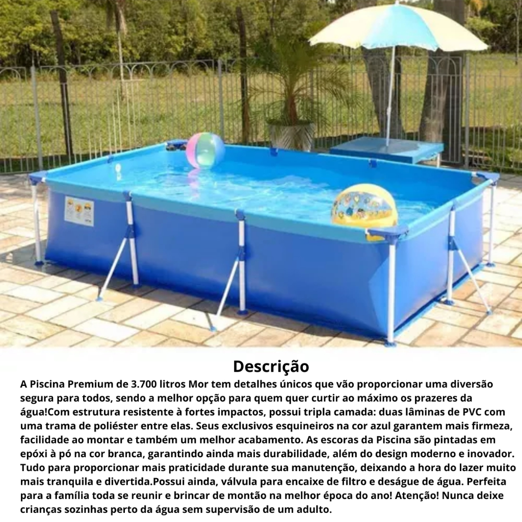 Piscina Retangular 3700 Litros Estruturada Premium Mor