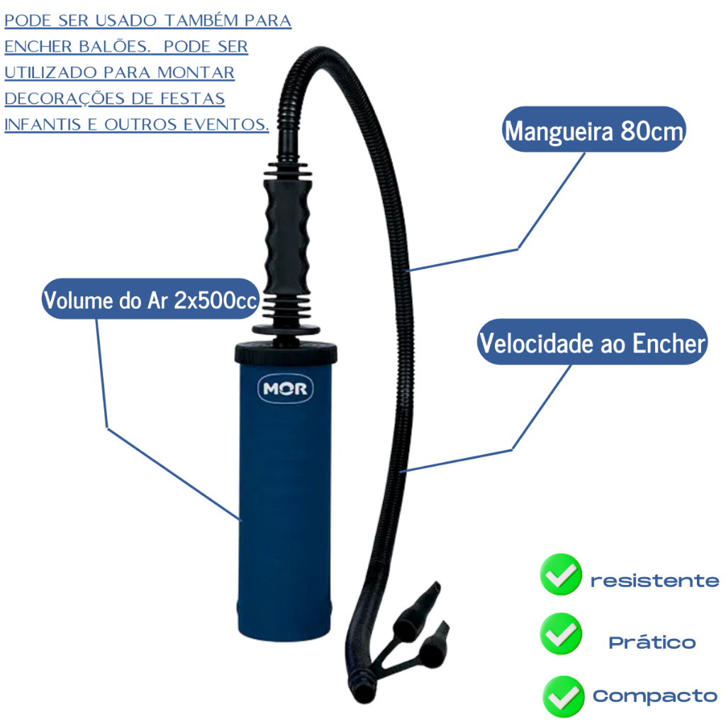 Inflador Pratico Bomba Manual Da Mor Com Ação Dupla 3 Bicos