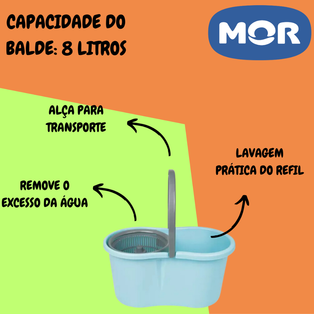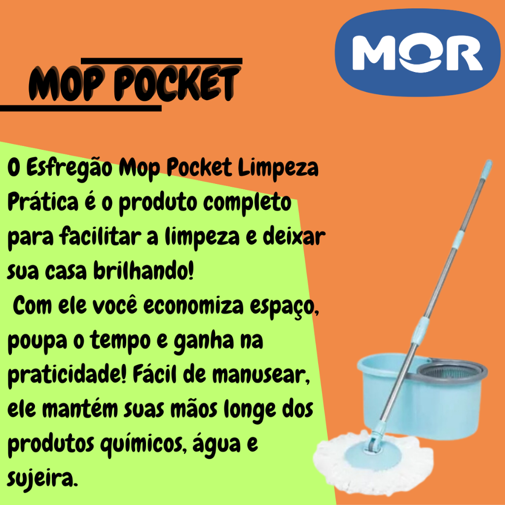 Esfregão Mop Pocket C/ Balde 8 Litros Limpeza Prática Mor