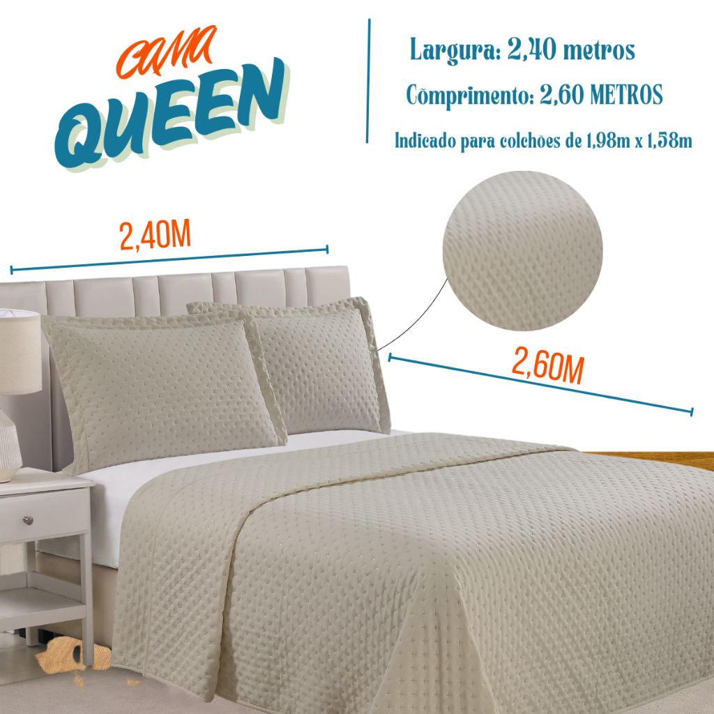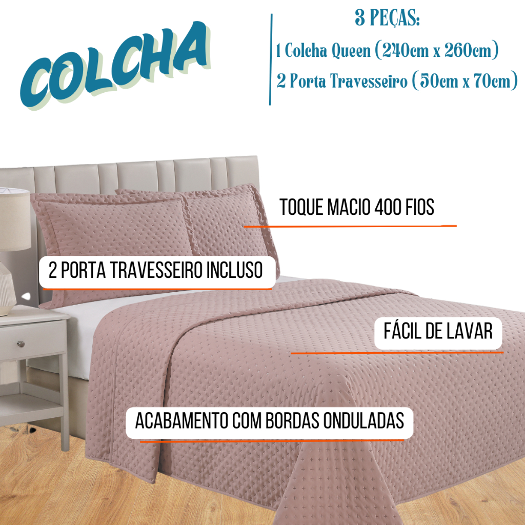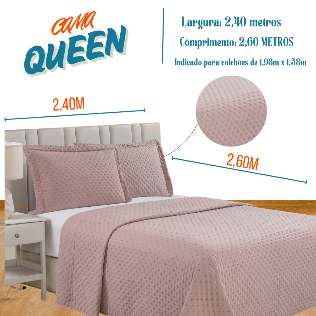 Colcha Lux Cobre Leito Para Cama Queen 240x260cm +2 Porta travesseiros - Lisa