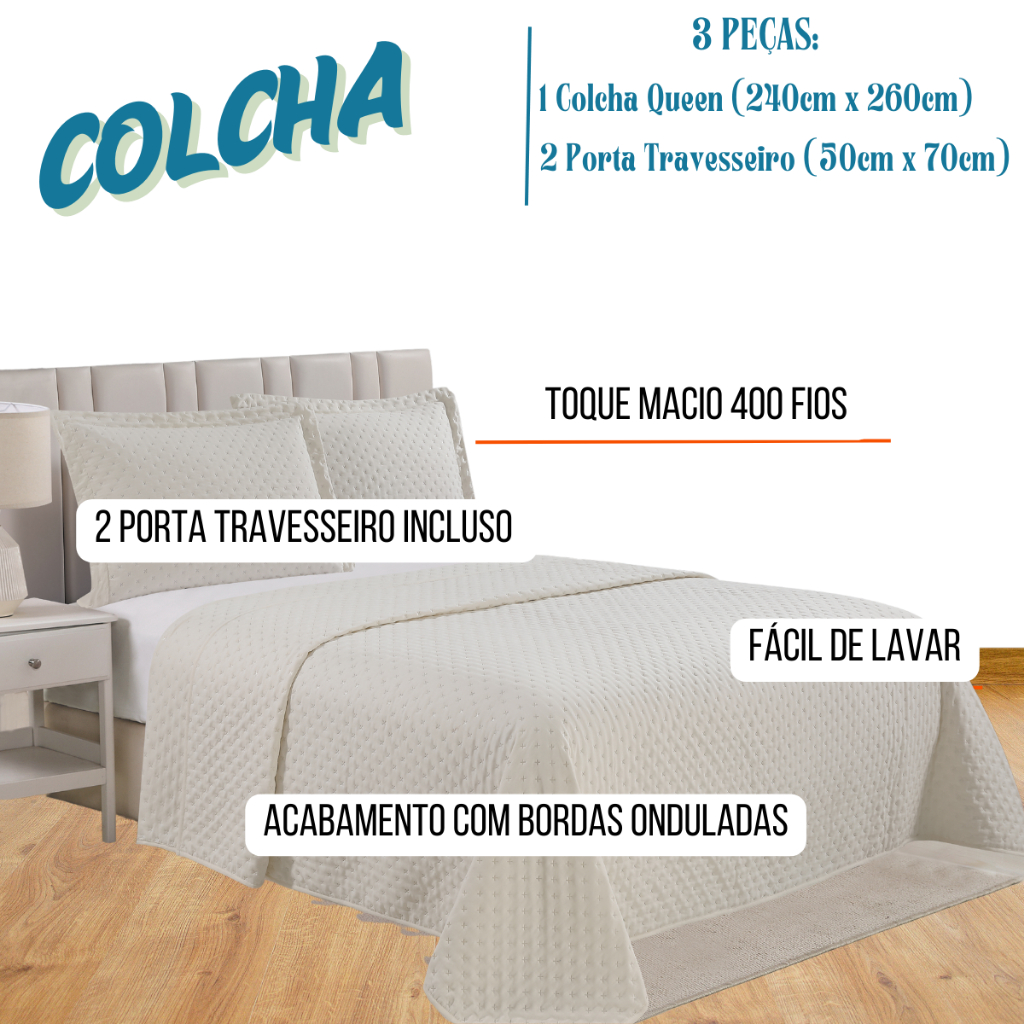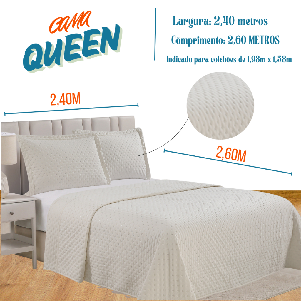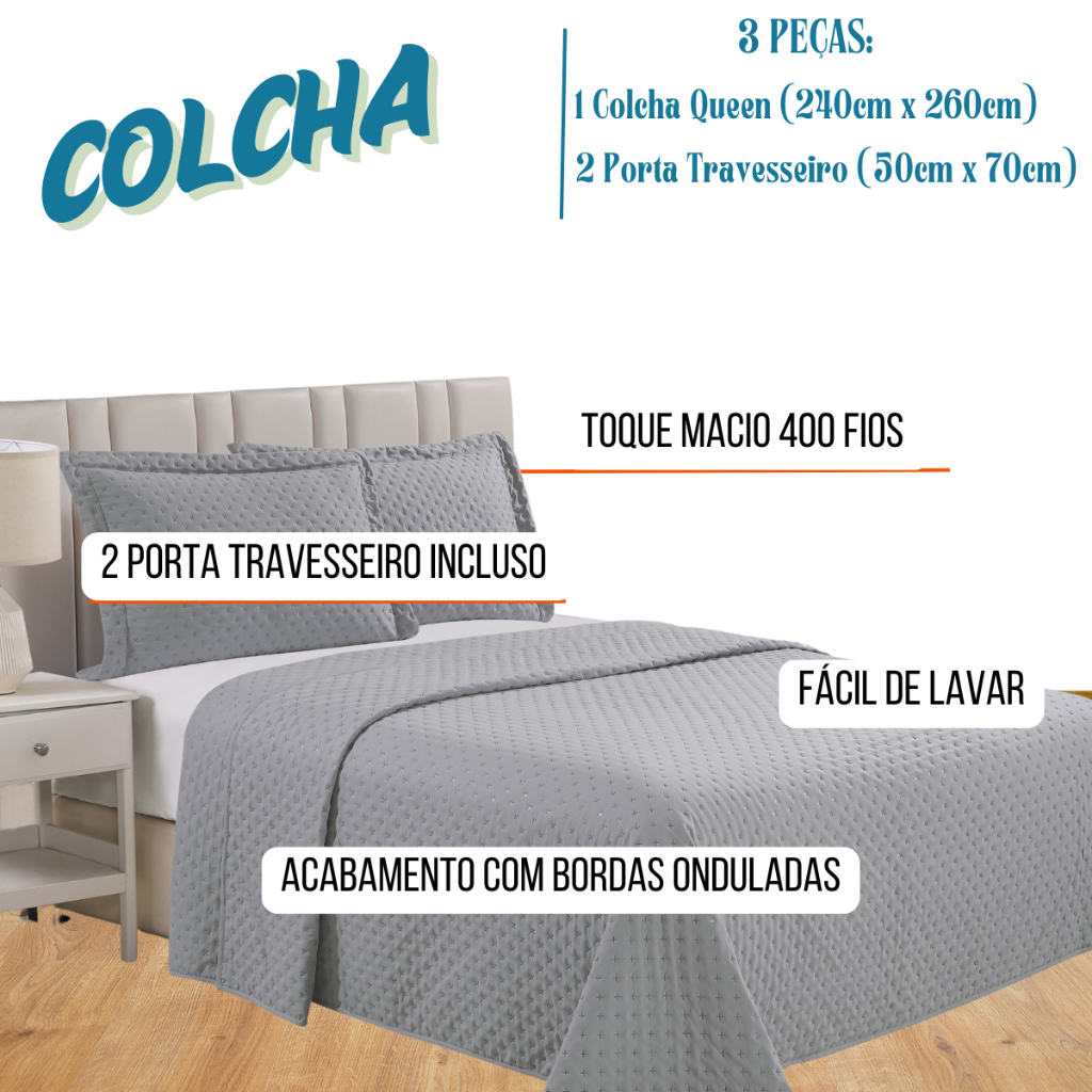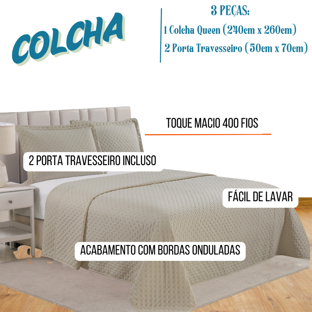 Colcha Lux Cobre Leito Para Cama Queen 240x260cm +2 Porta travesseiros - Lisa
