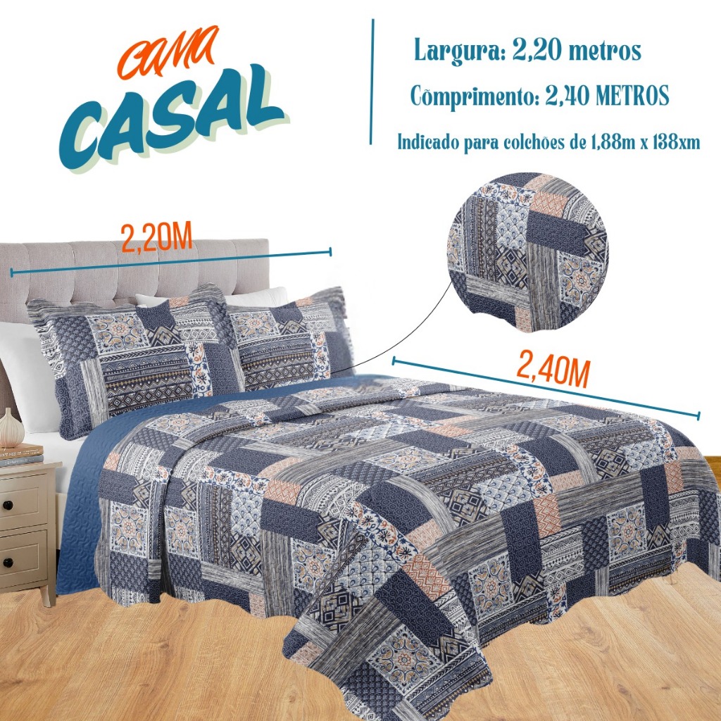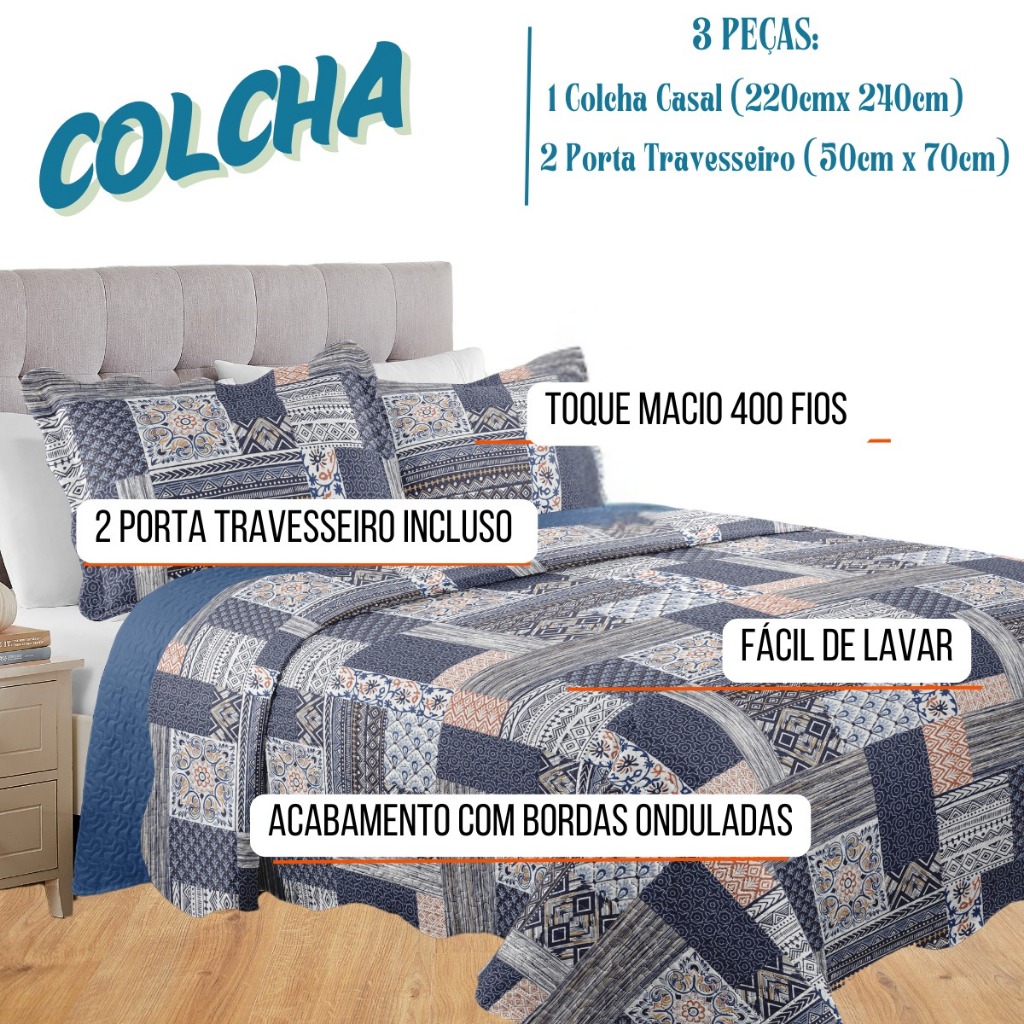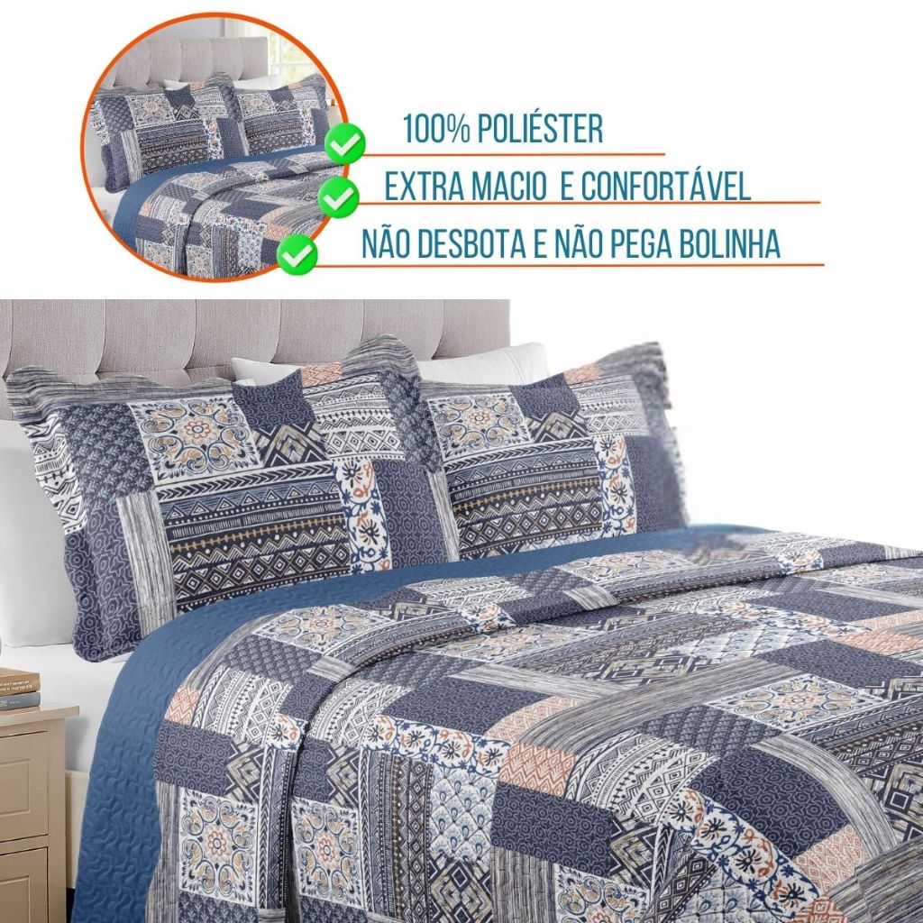 Colcha Premium Casal 3 Estampada Peças Moderna 400 Fios Macio Mikasa - 3 Peças