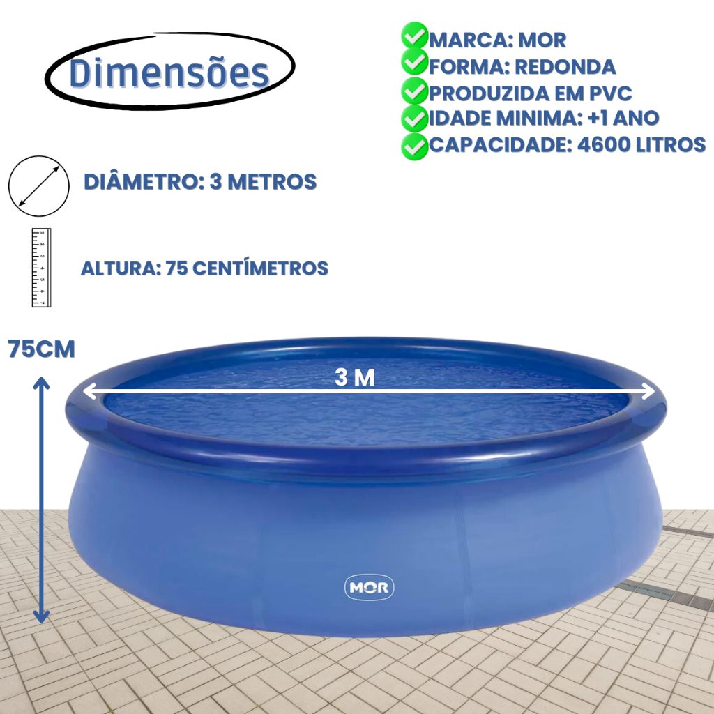 Piscina Infantil Inflável Redonda Lona 4600 Litros - Mor