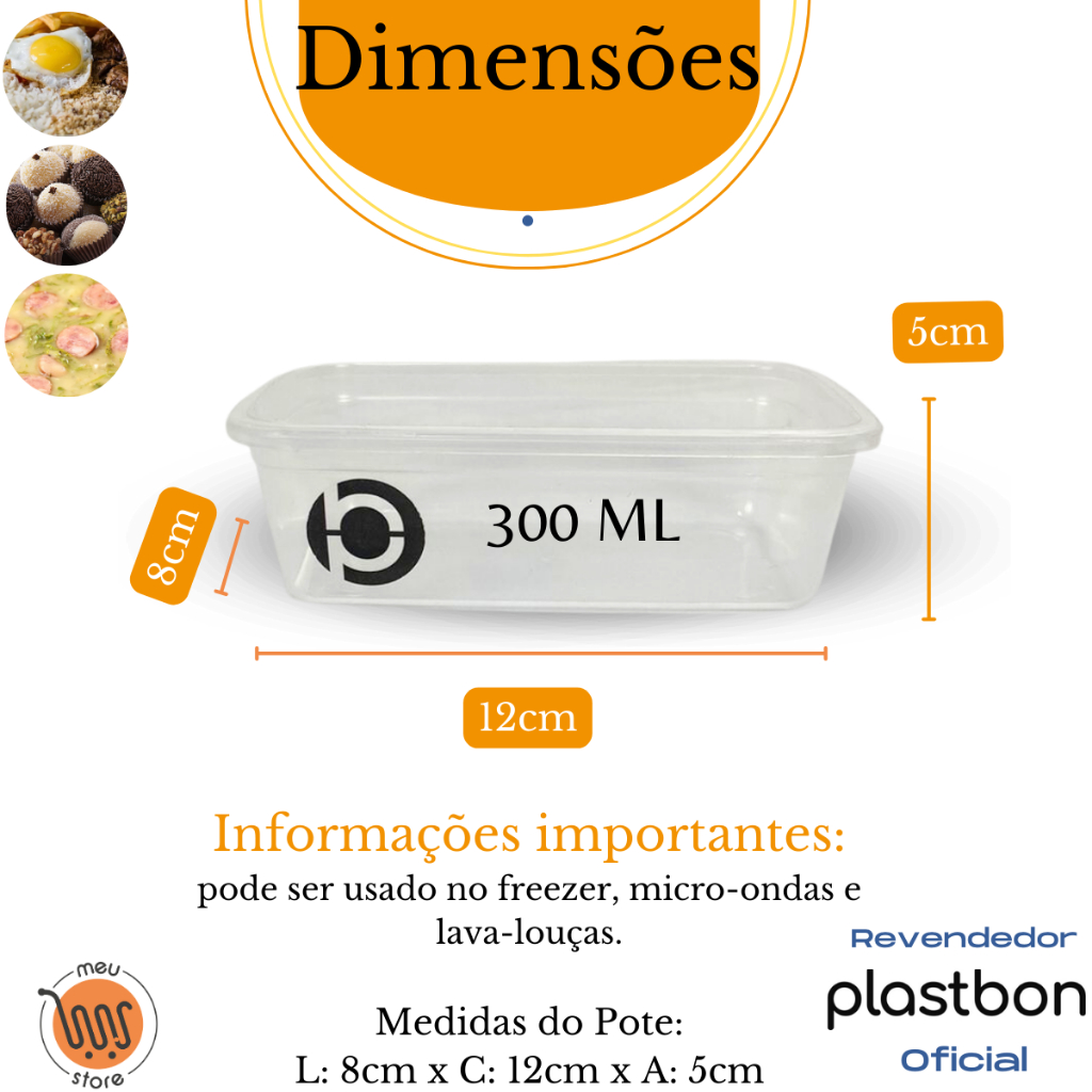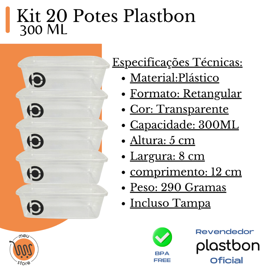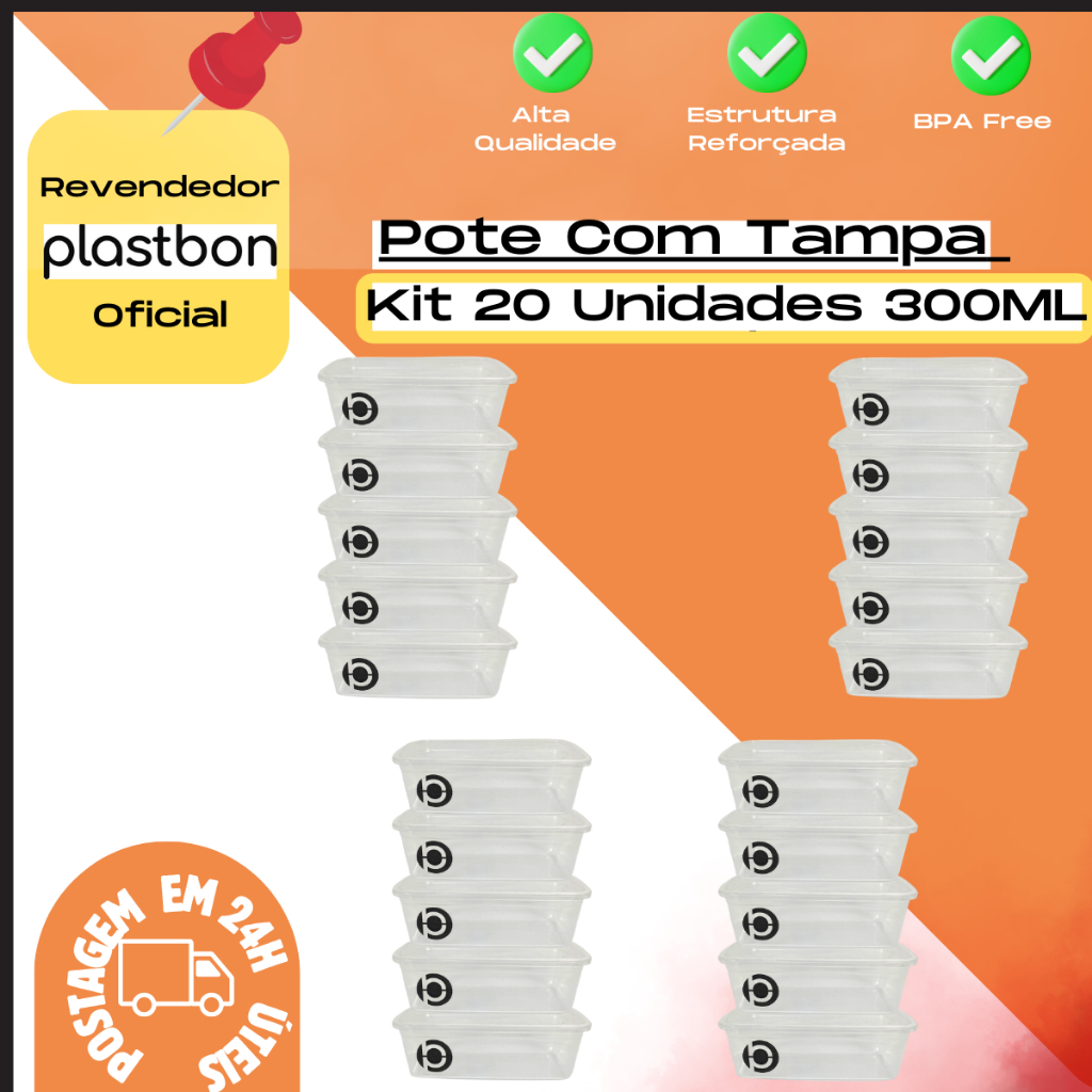 Kit 20 Pote Vasilha Com Tampa 300Ml BPA FREE Plastbon