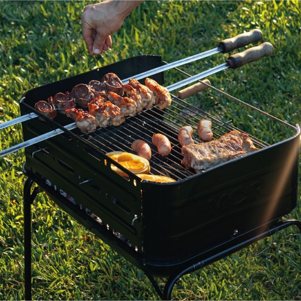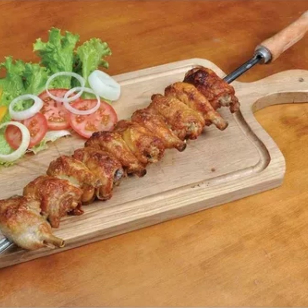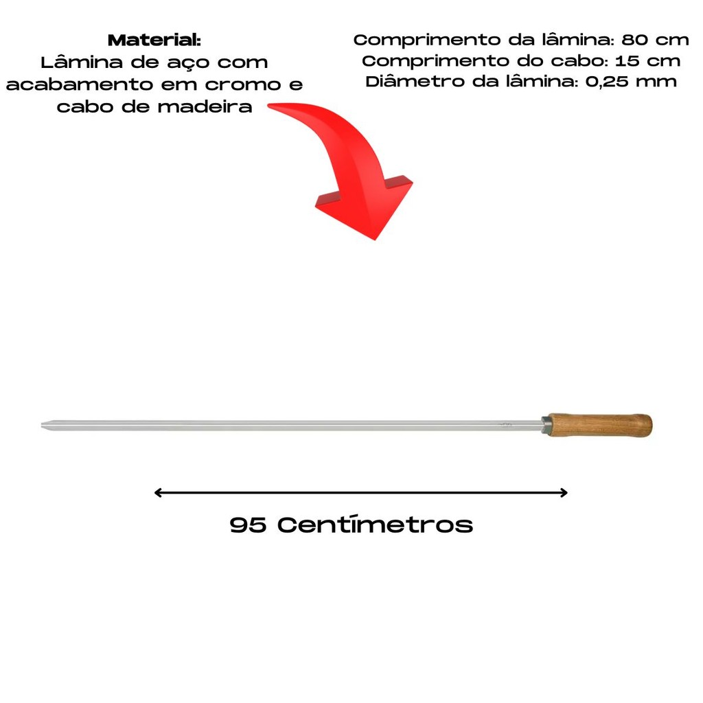 Espeto Simples 95cm Churrasco Mor Aço Cromado Cabo Madeira