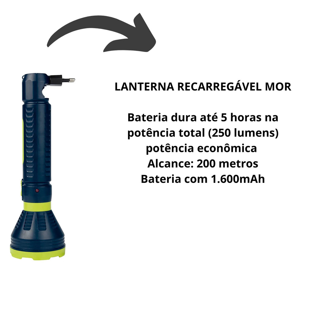 Lanterna Led 250 Lúmens Recarregável Para Acampamentos Mor