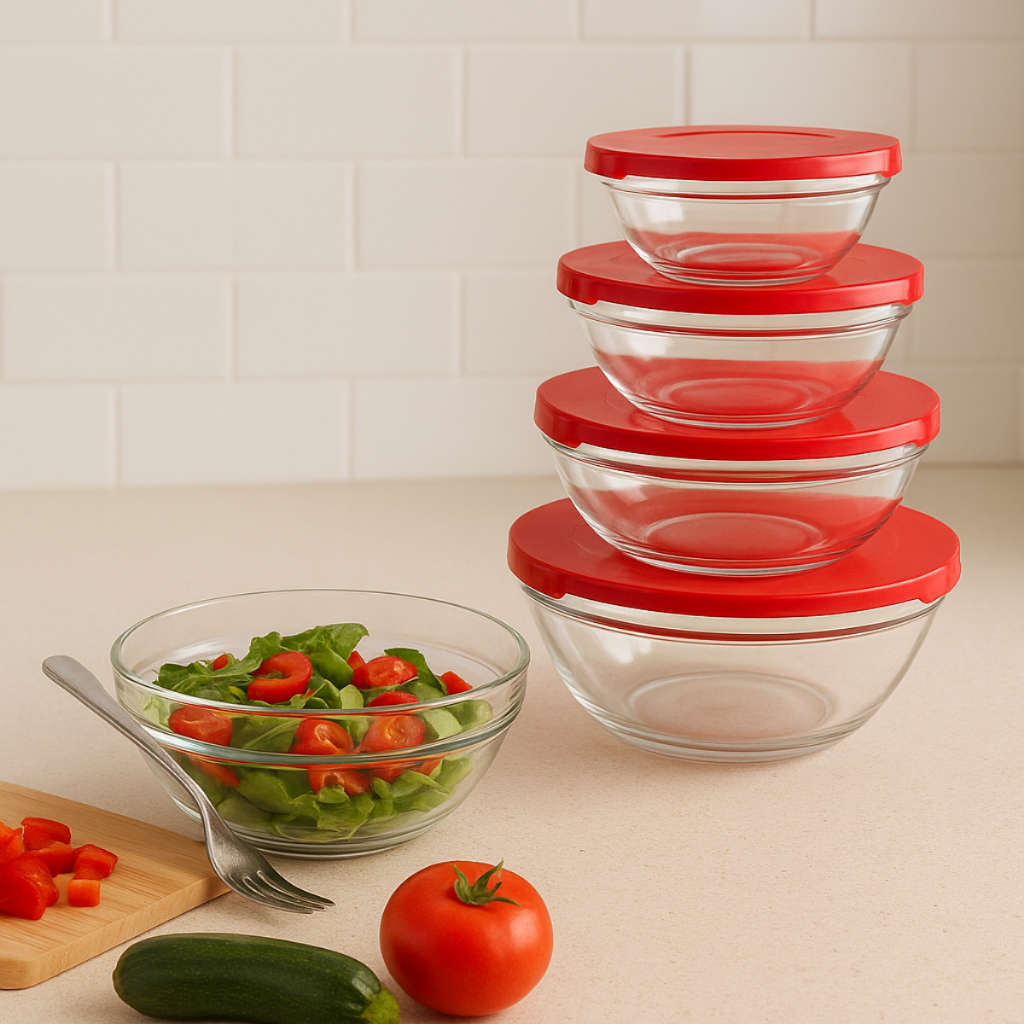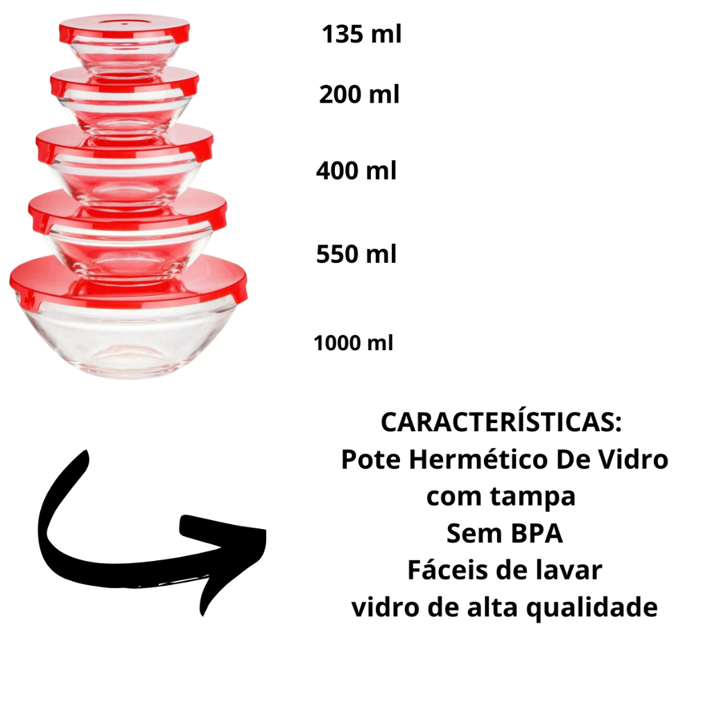 Kit de 5 Potes Herméticos de Vidro Com Tampa de Plástico