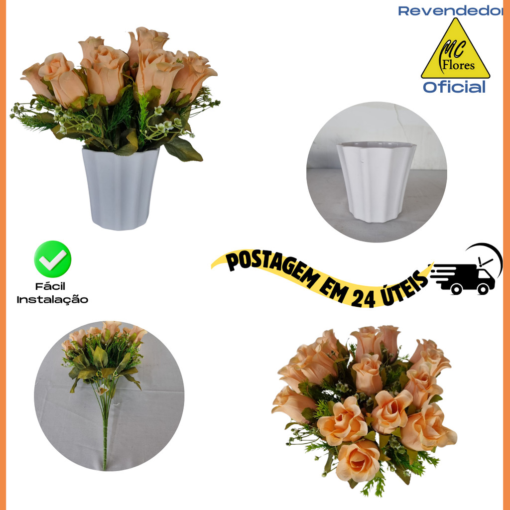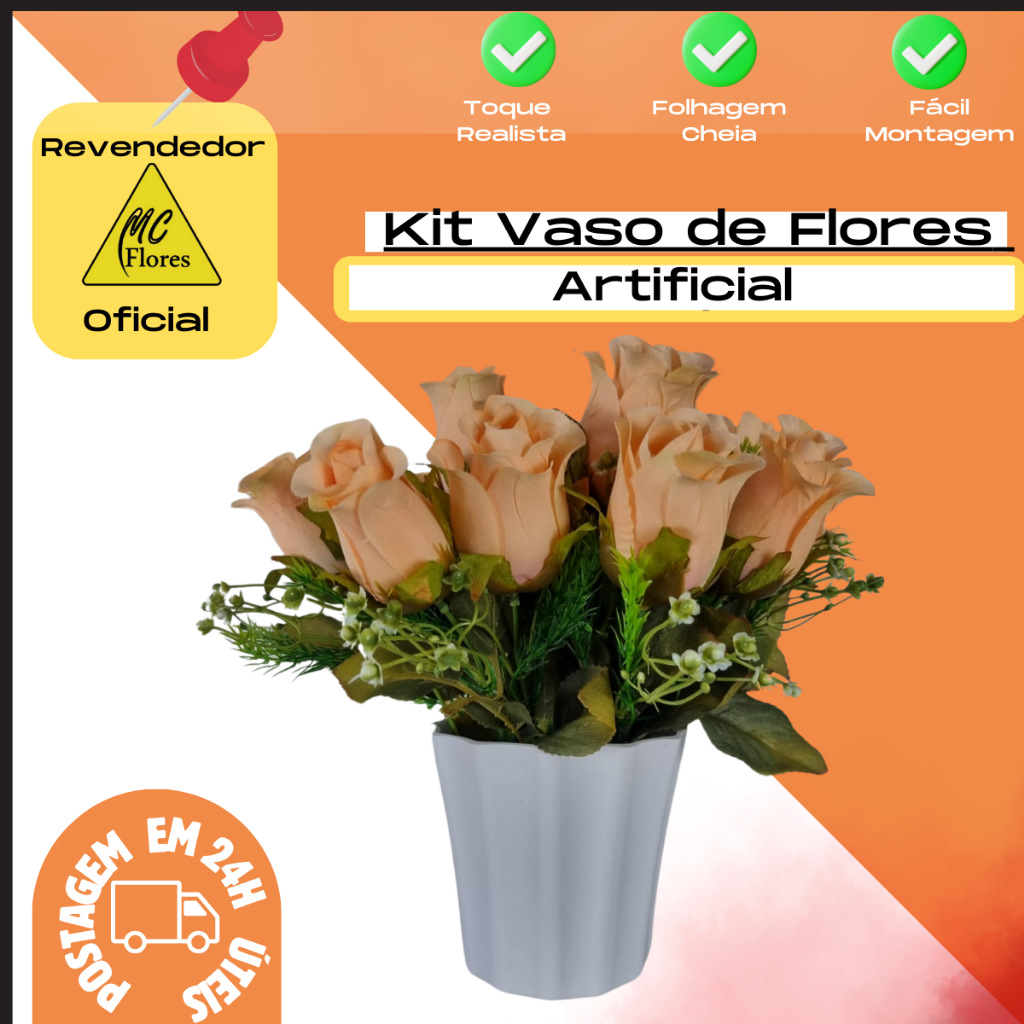 Kit Vaso com Buque de Flores Artificial Mc Flores