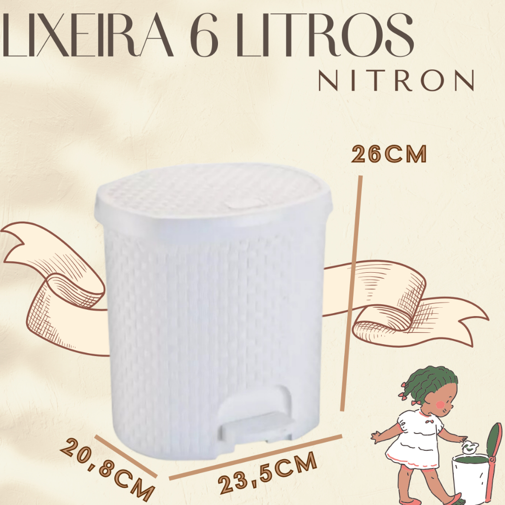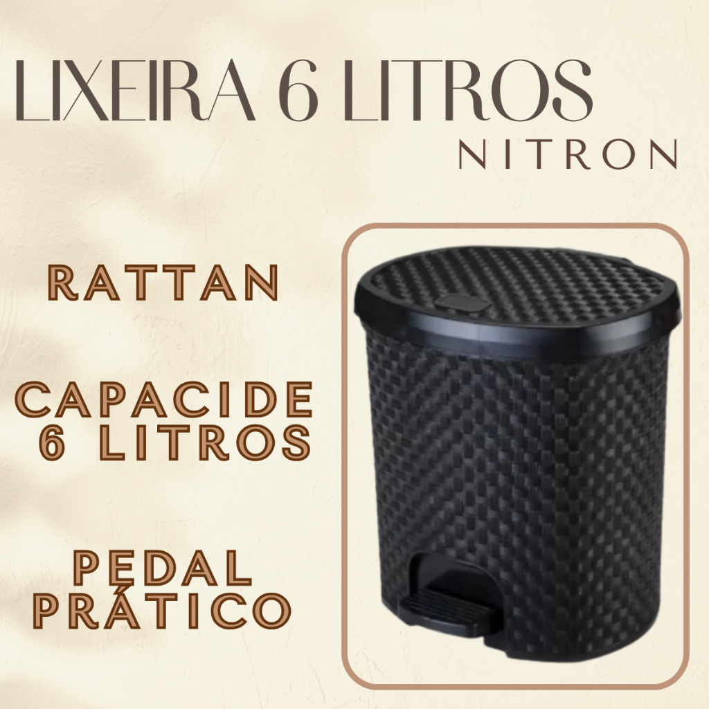 Lixeira Nitron Rattan Com Pedal 6 Litros Para Banheiro