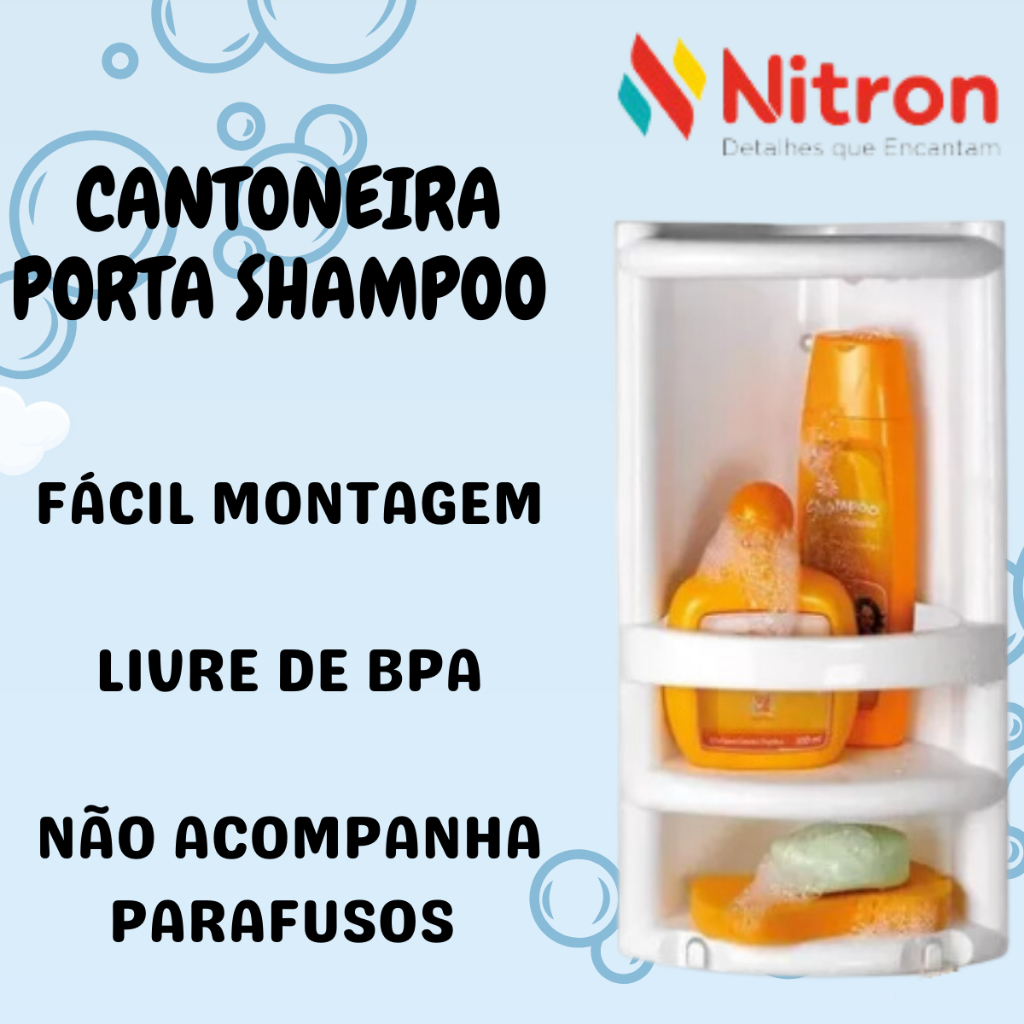 Cantoneira Suporte Prateleira 3 Andares Porta Shampoo e Sabonete