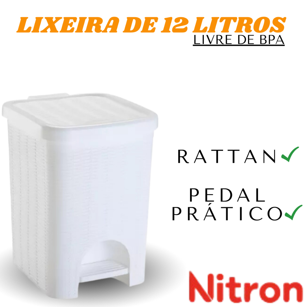 Lixeiras Vime Para Cozinha Banheiro 12 Litros Com Pedal - Nitron