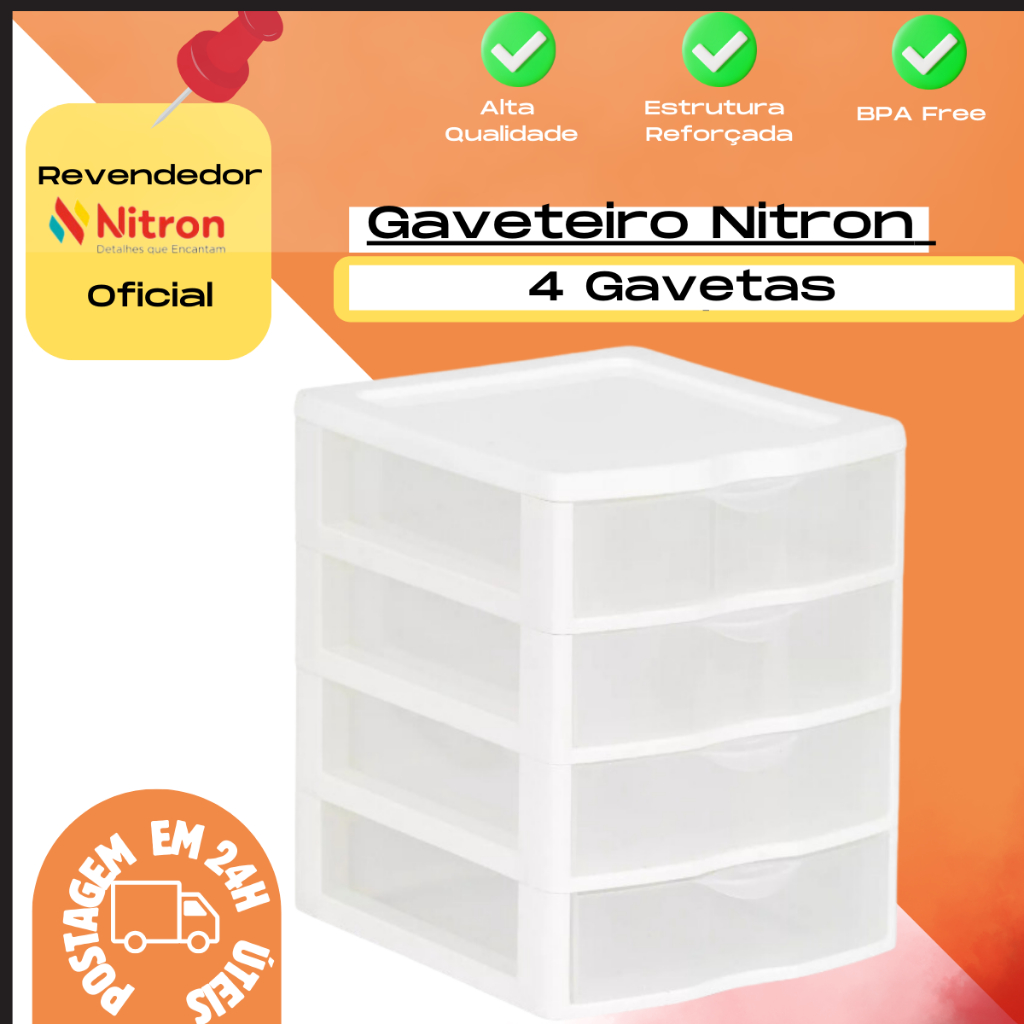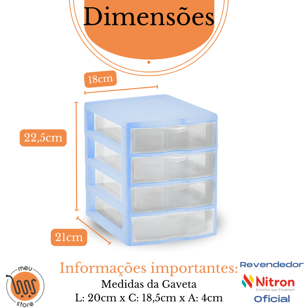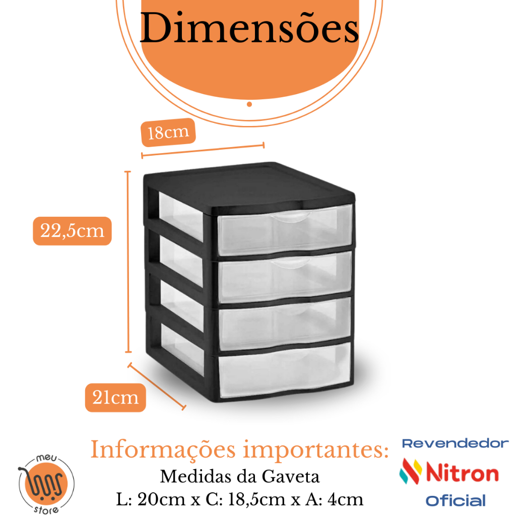 Gaveteiro Organizador Pequeno Plástico C/4 Gavetas Nitron
