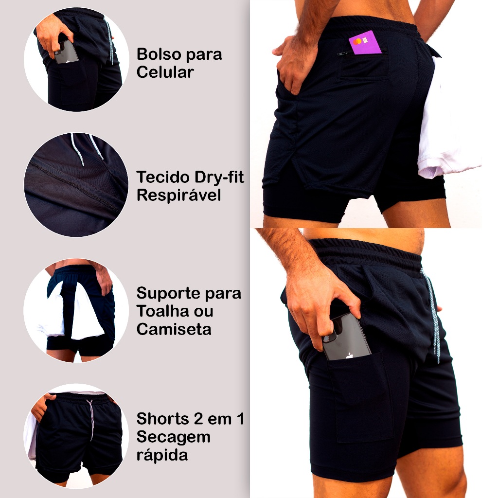 Short de Compressão 2 em 1 Academia Treino Fitness Kamogawa Boxing Gym Luta Mode