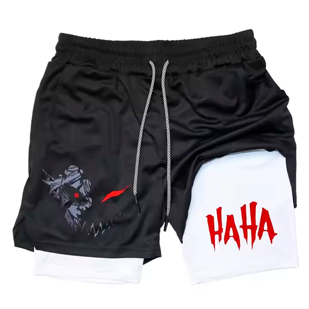 Short Compressão 2 em 1 Dry-Fit Arte Anime Manga Fitness Treino Haha Demon Arte