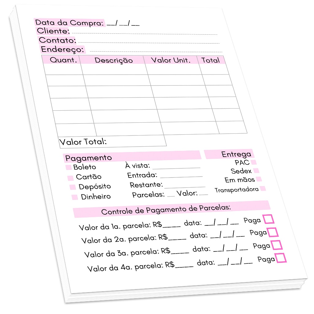 Bloco Controle de Vendas a Prazo, Parceladas, Fiado (100 folhas)