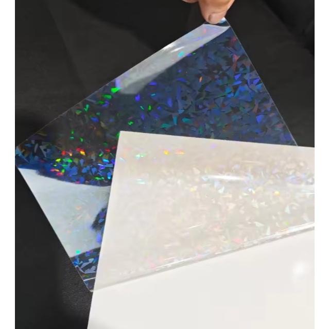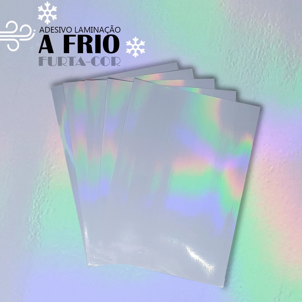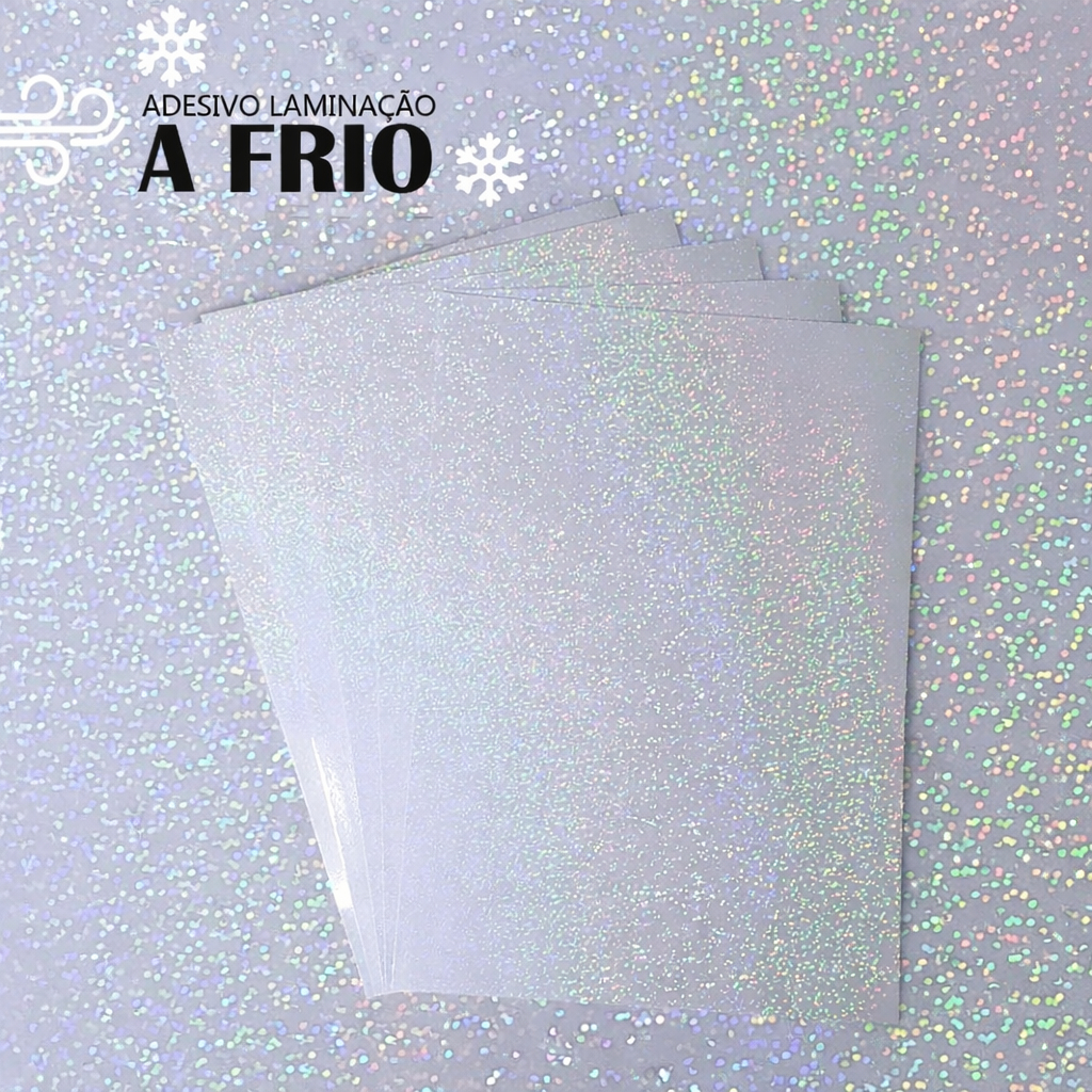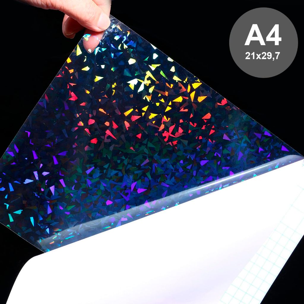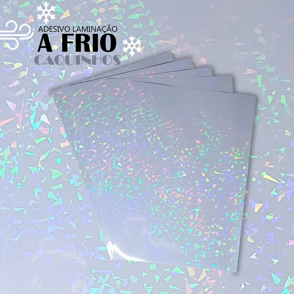 Vinil Adesivo Holográfico para Laminação a Frio A4 (transparente) Caquinhos, Glitter e Furta Cor