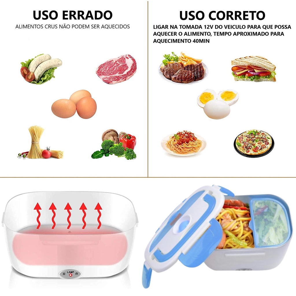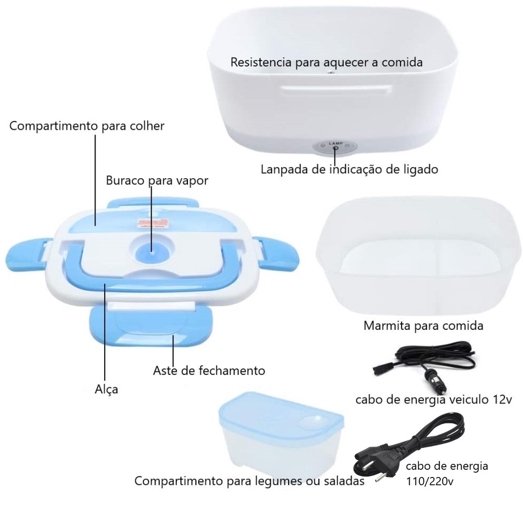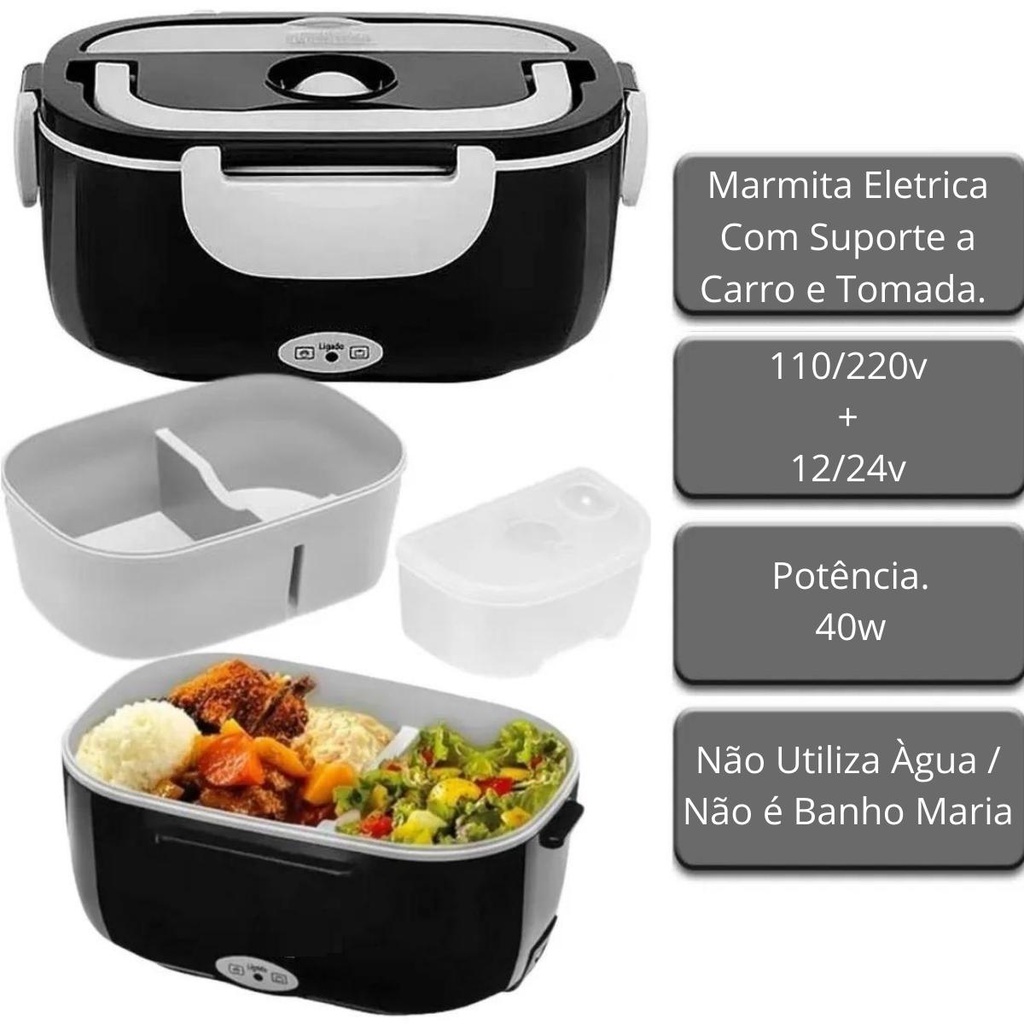 Marmita Elétrica Esquentar Comida Carro 12/24v + Tomada 110/220v