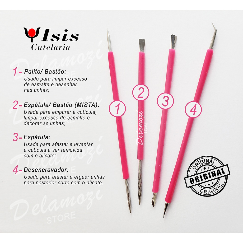 2 Palito Unha Bastão Isis Cutelaria Aço Inox Manicure Pedicure