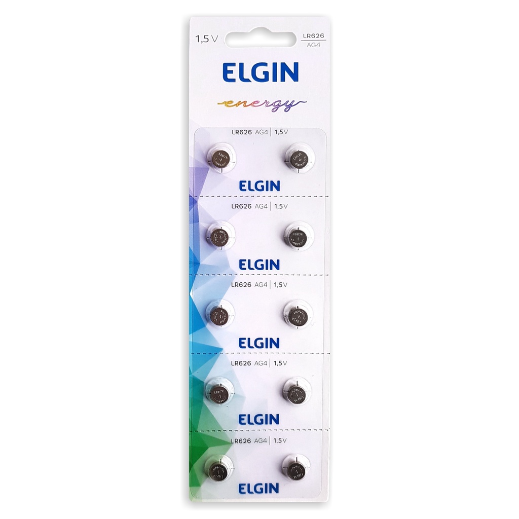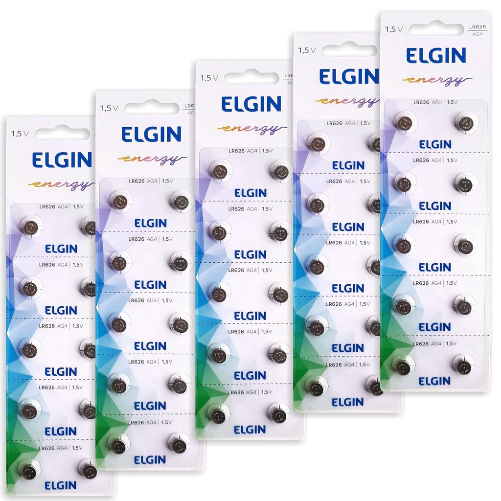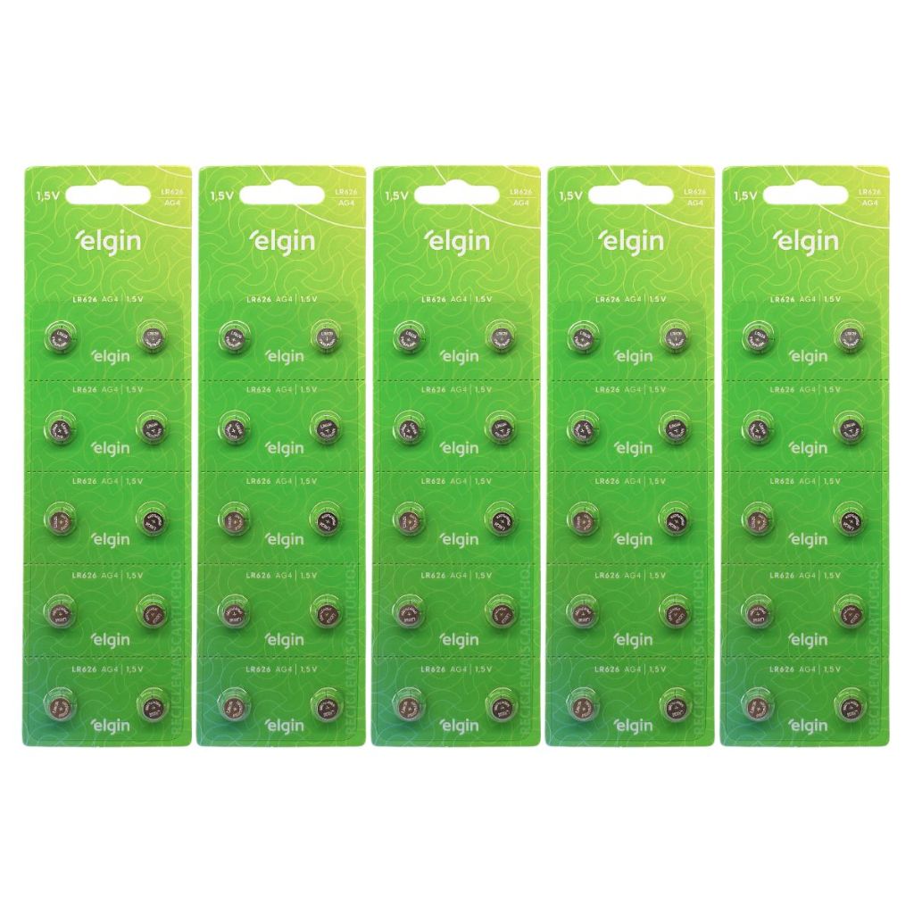 50 Pilha (5 Cartela) Bateria Elgin Alcalina Lr626 377 / 376 Ag4 1.5v