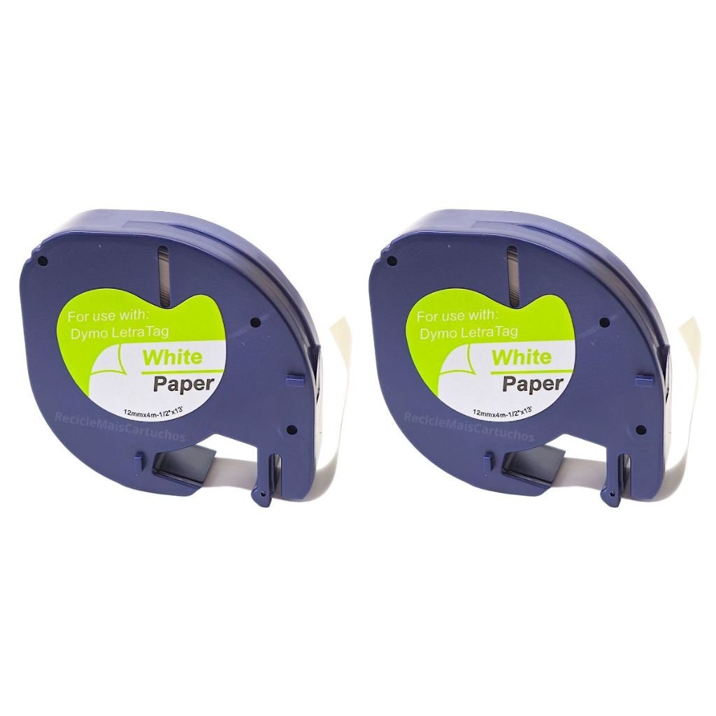 2 Fita Rotulador Compatível Dymo Letratag D91200 91200 12mm Branca
